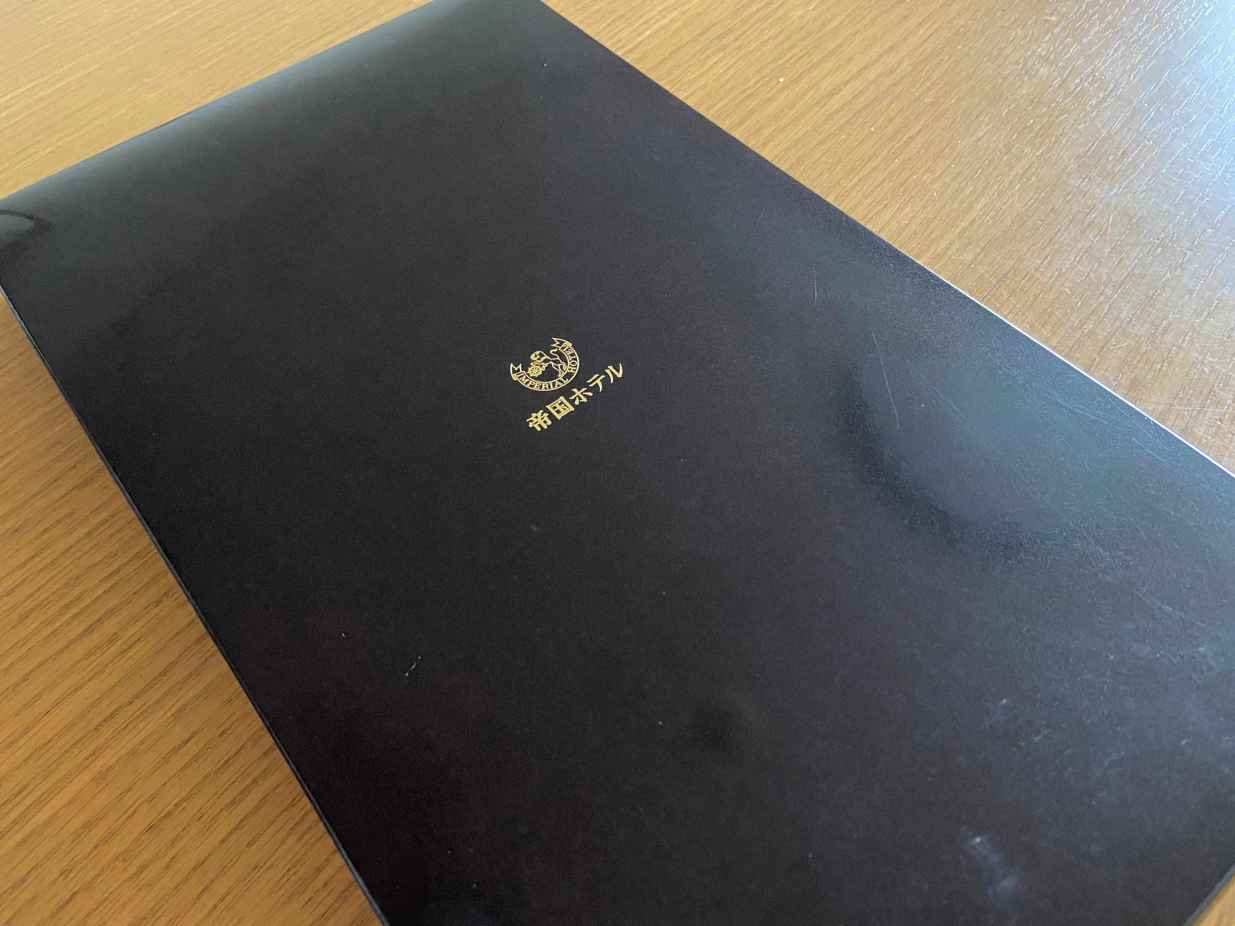 黒い箱の中央には帝国ホテルの金色のロゴ。シンプルながら風格を感じるデザインです。