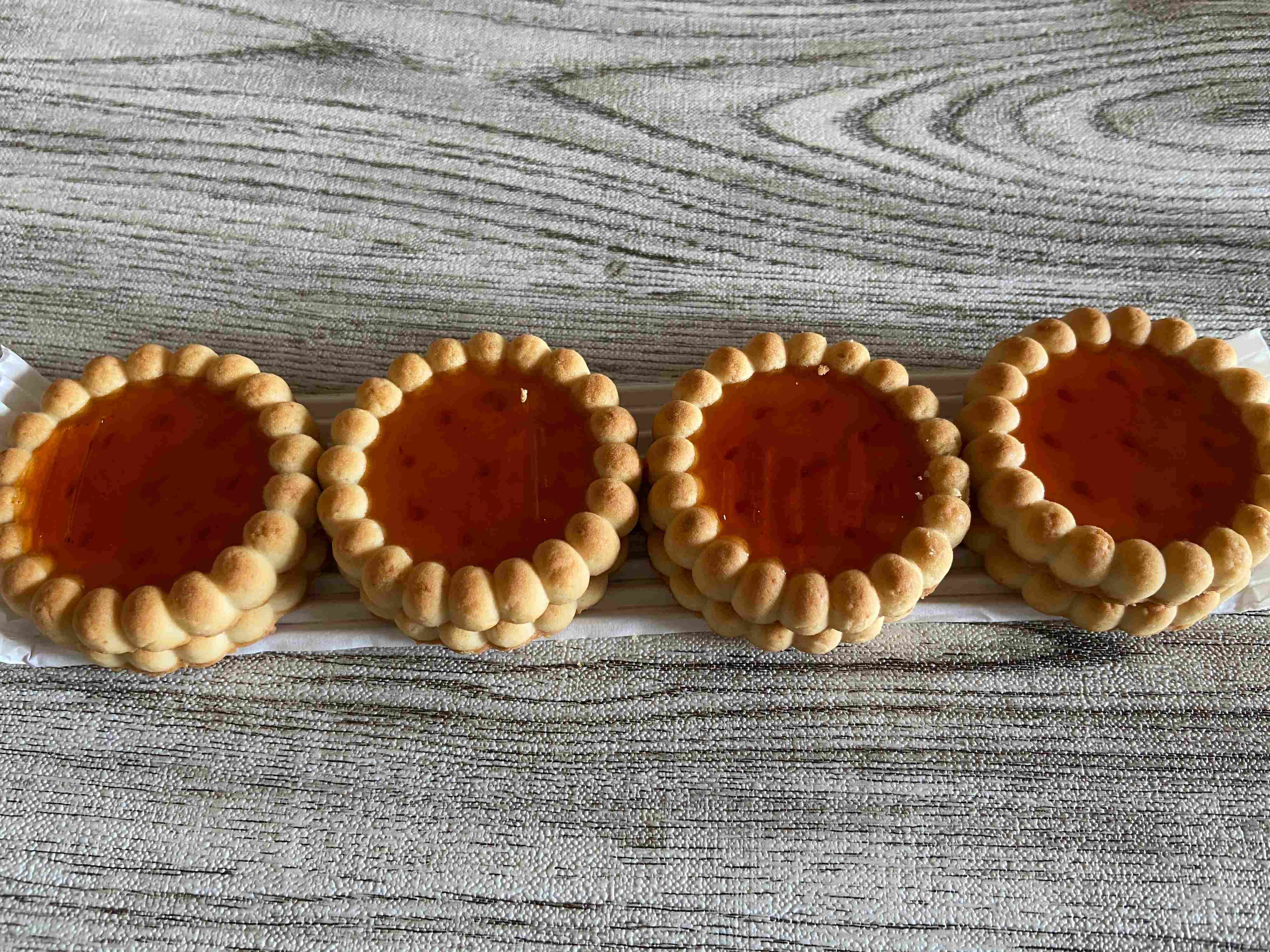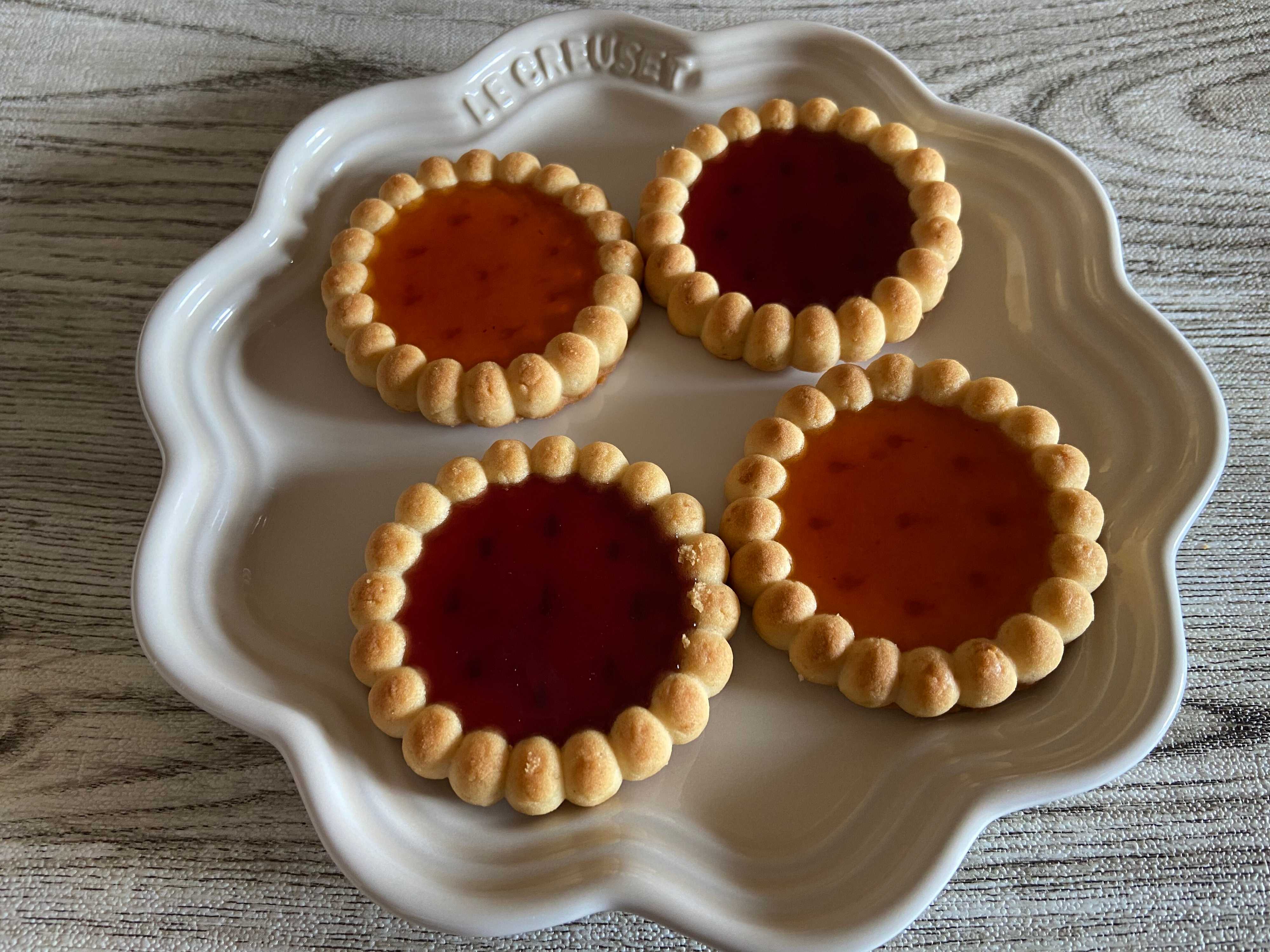 こちらはタルトレットアプリコット。個包装ではありません。タルト生地にたっぷりのアプリコットフィリングが入って、お花のような形がとってもかわいらしいですね。