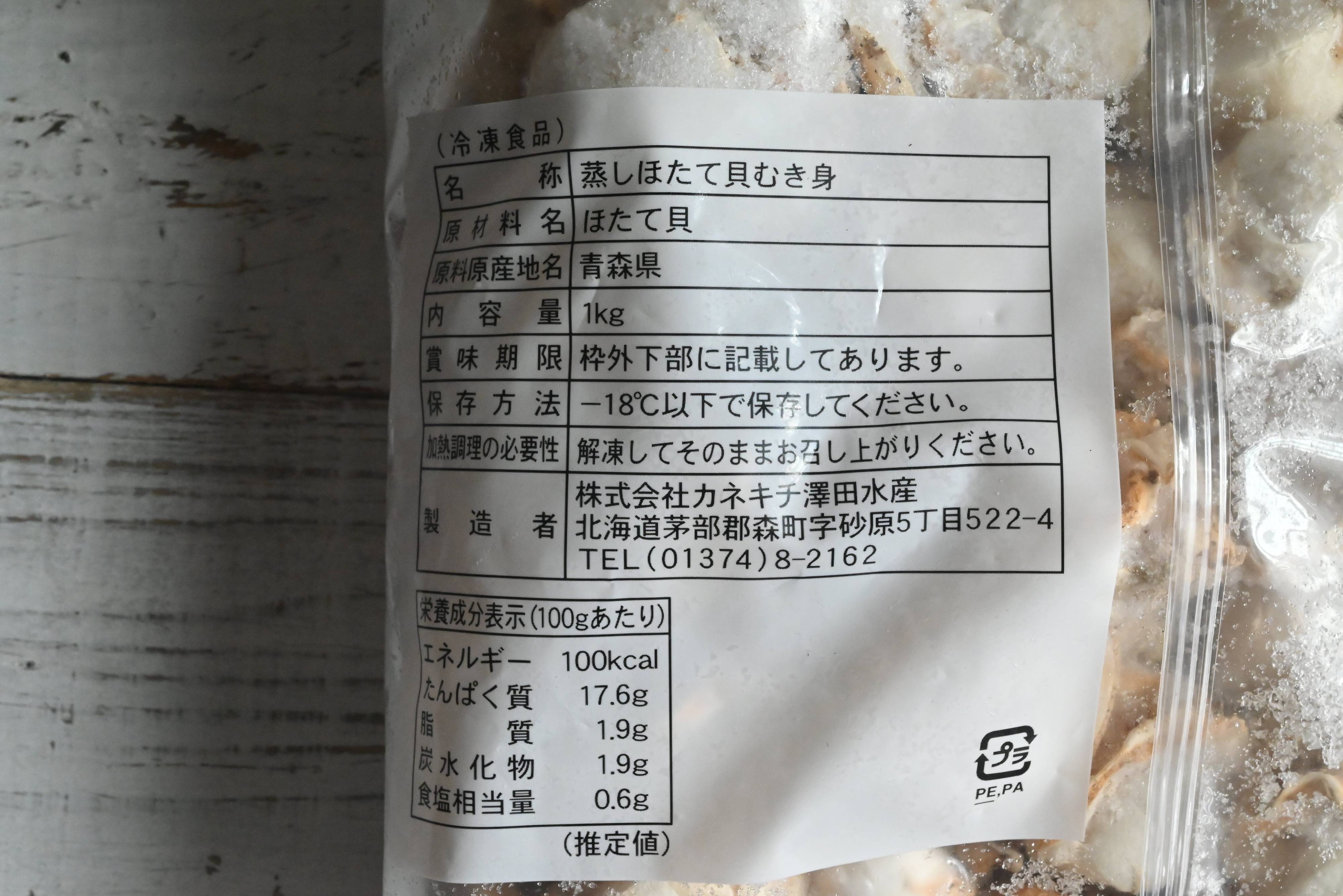 ベビーホタテ1kg、と聞くと食べ切れるか不安になるかと思いますが、冷凍のまま保存すれば賞味期限はおよそ1年5ヶ月!