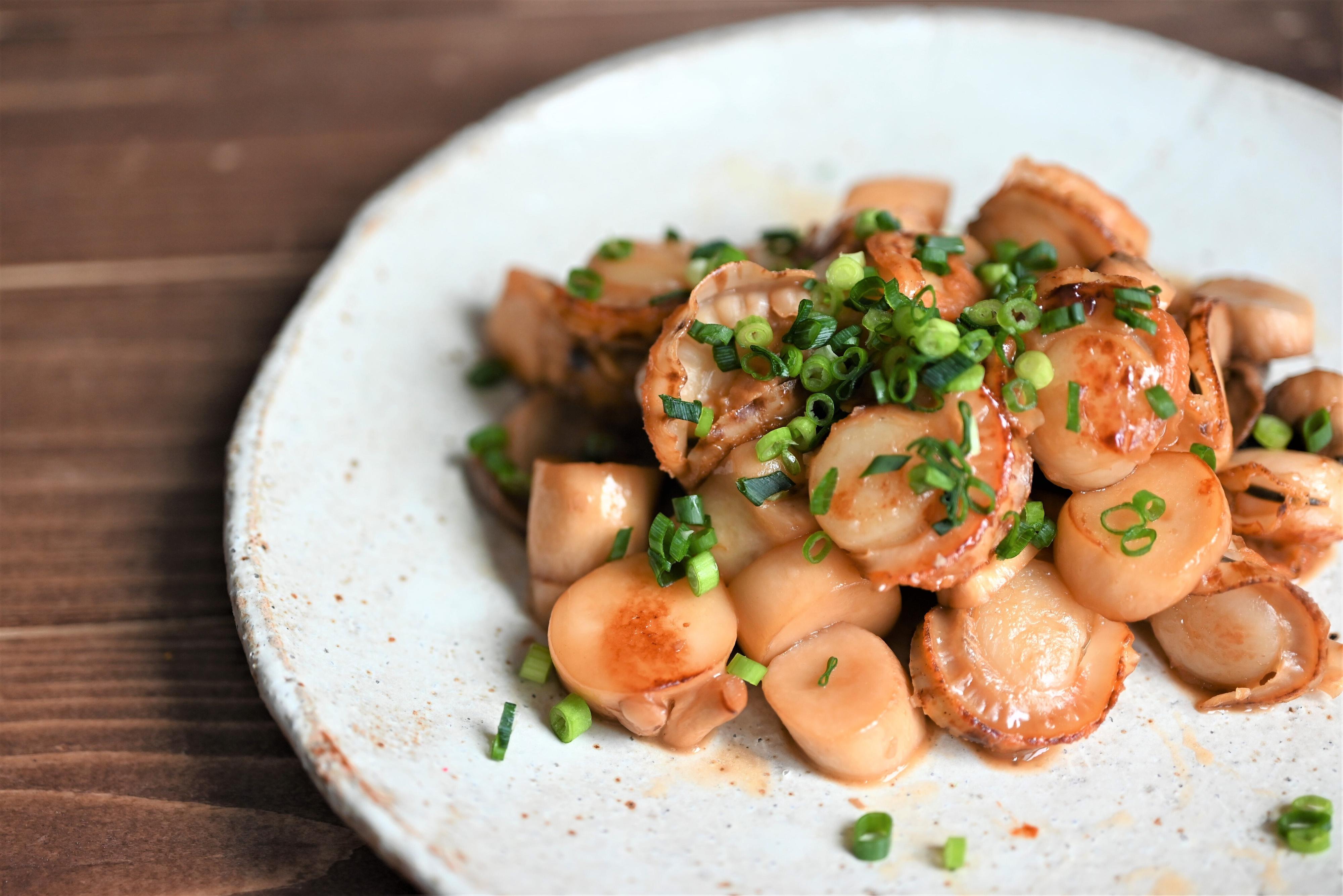 ベビーホタテとエリンギのめんつゆバター炒め
