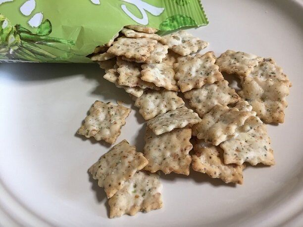 パリパリサクサクの小さめサイズのスナックは、ごまが香ばしくわさびもしっかり効いています。