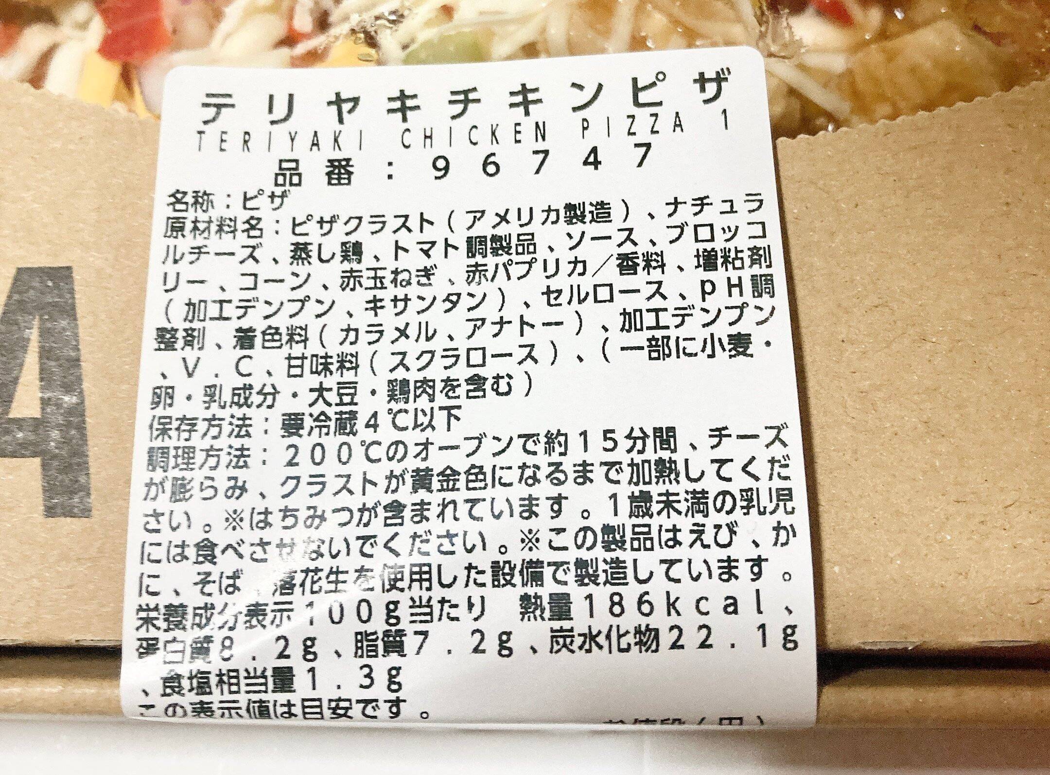 テリヤキチキンピザ 1,680円 100gあたり186kcal