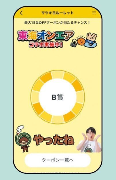「マツキヨアプリのルーレットを回すと、10~15%の割引クーポンが当たります。1日2回までルーレットを回せますよ」(E澤)