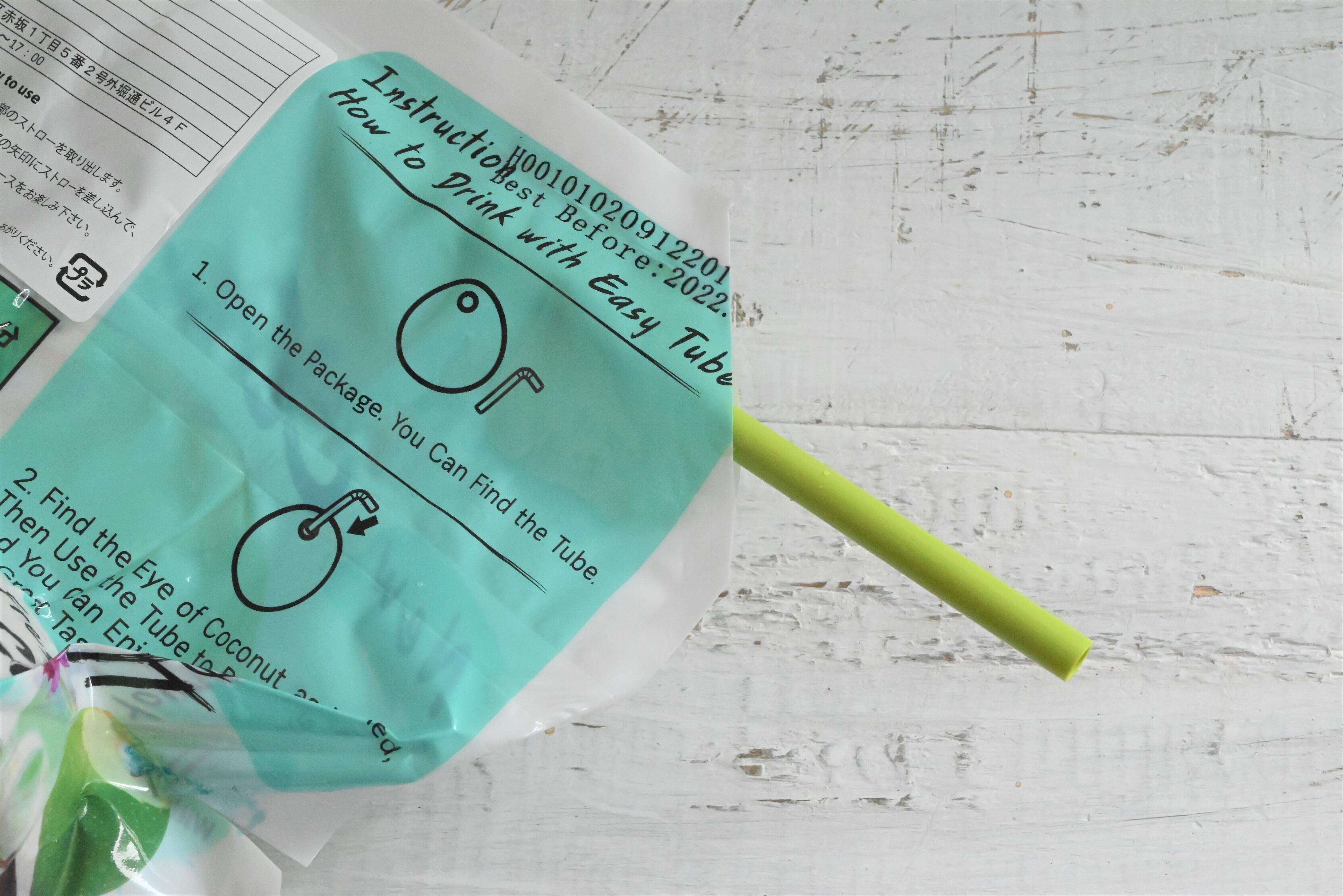 パウチを剥がしてから飲むこともできますが、ストローの刺さる部分を見失いやすいので気をつけてくださいね。