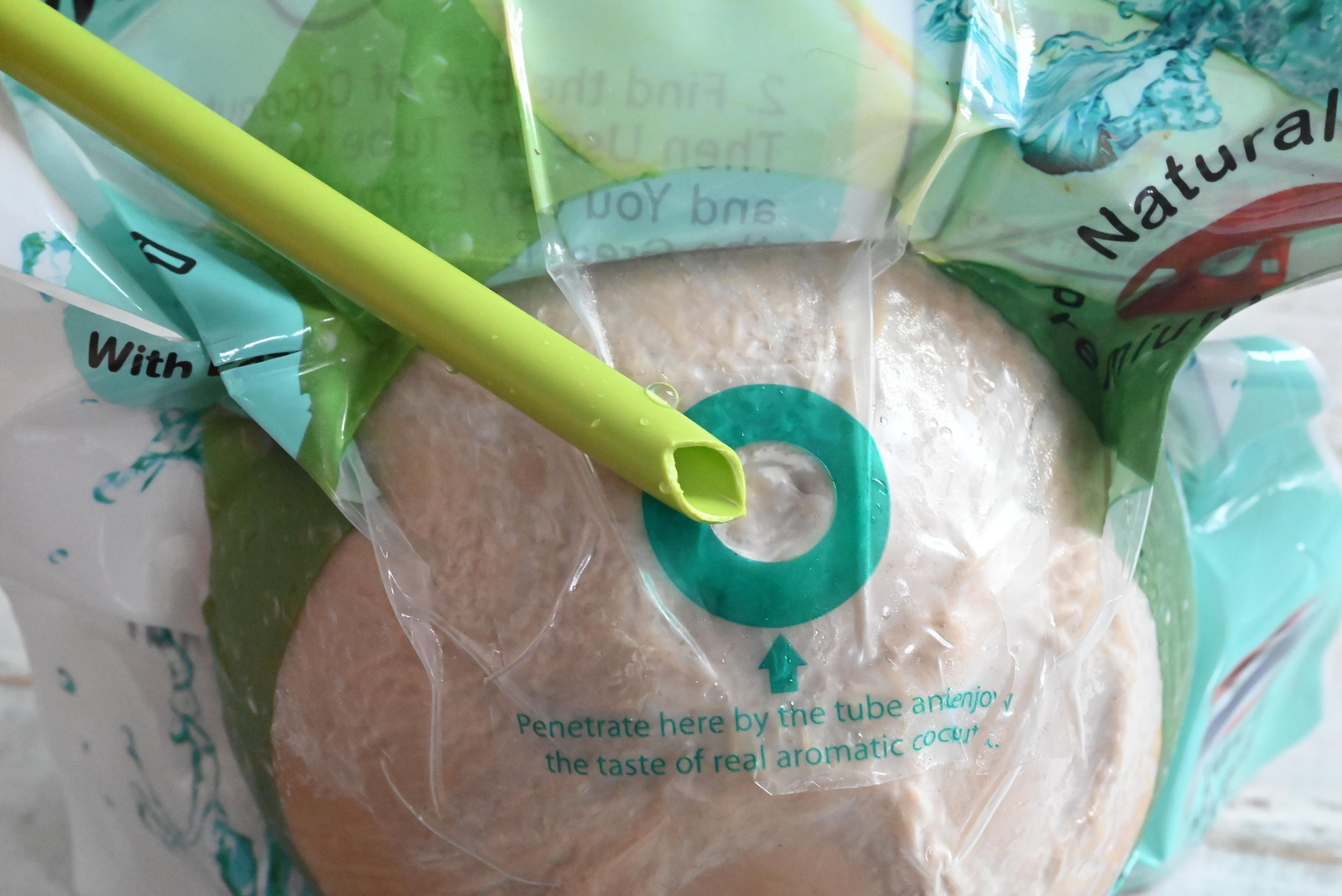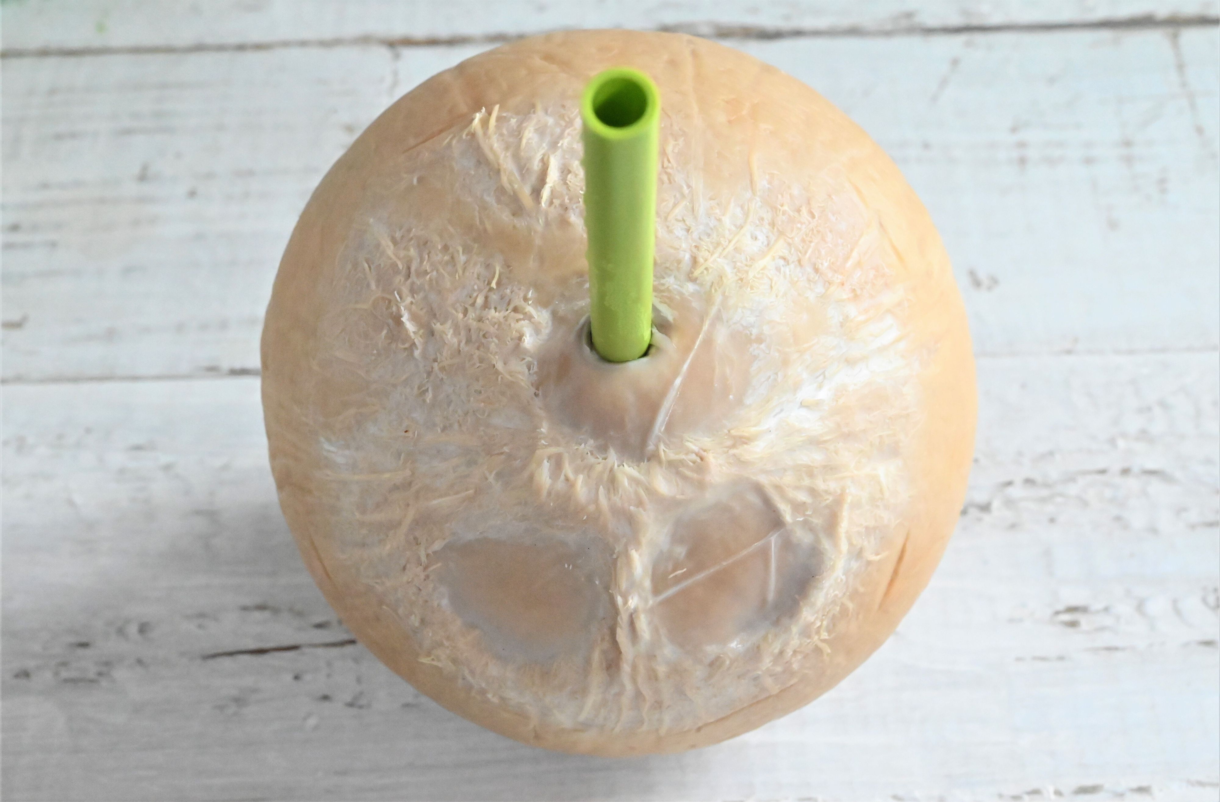 ココナッツの上部にストローが入っているので取り出します。