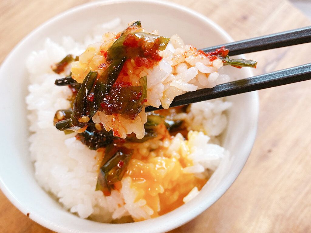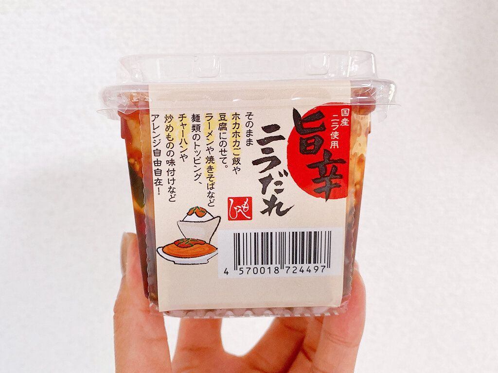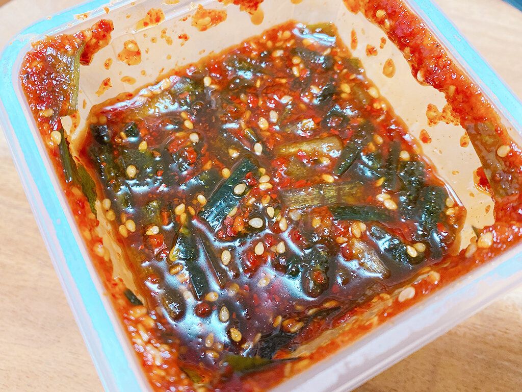 材料はニラを醤油、にんにく、唐辛子、ごまなどでつけたもので