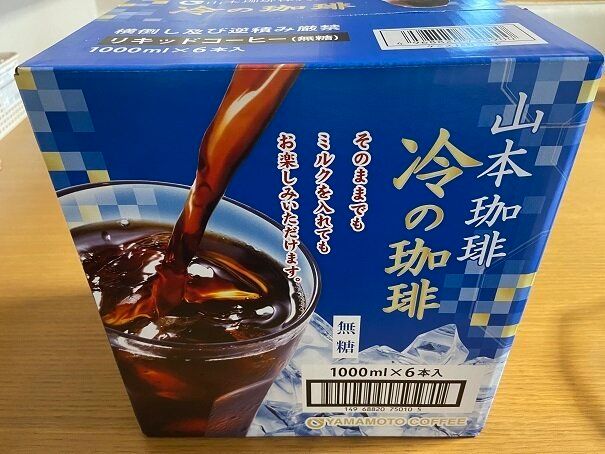 「山本珈琲 冷の珈琲」(購入時:1,148円)は毎年コストコに春頃から登場する人気商品。無糖タイプのコーヒーで、1L×6本入りです。