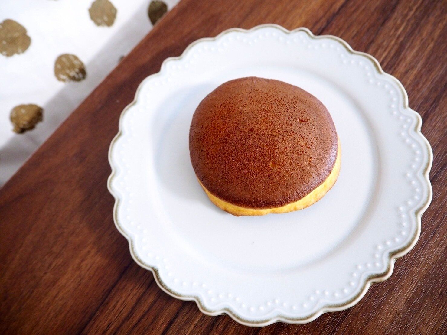 開封してみると、黒糖が入っているからか、よく見るどらやきよりもこんがりとした茶色い見た目です。