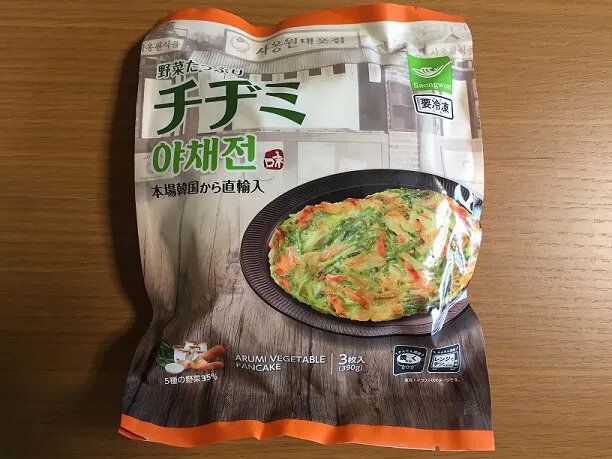 まずはこちら「野菜たっぷりチヂミ」(購入時:321円)です。