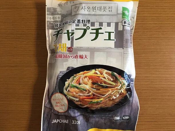 日本でも人気のある韓国料理「チャプチェ」(購入時:321円)は、電子レンジで温めるだけで食べられる、時短できるうれしい商品!