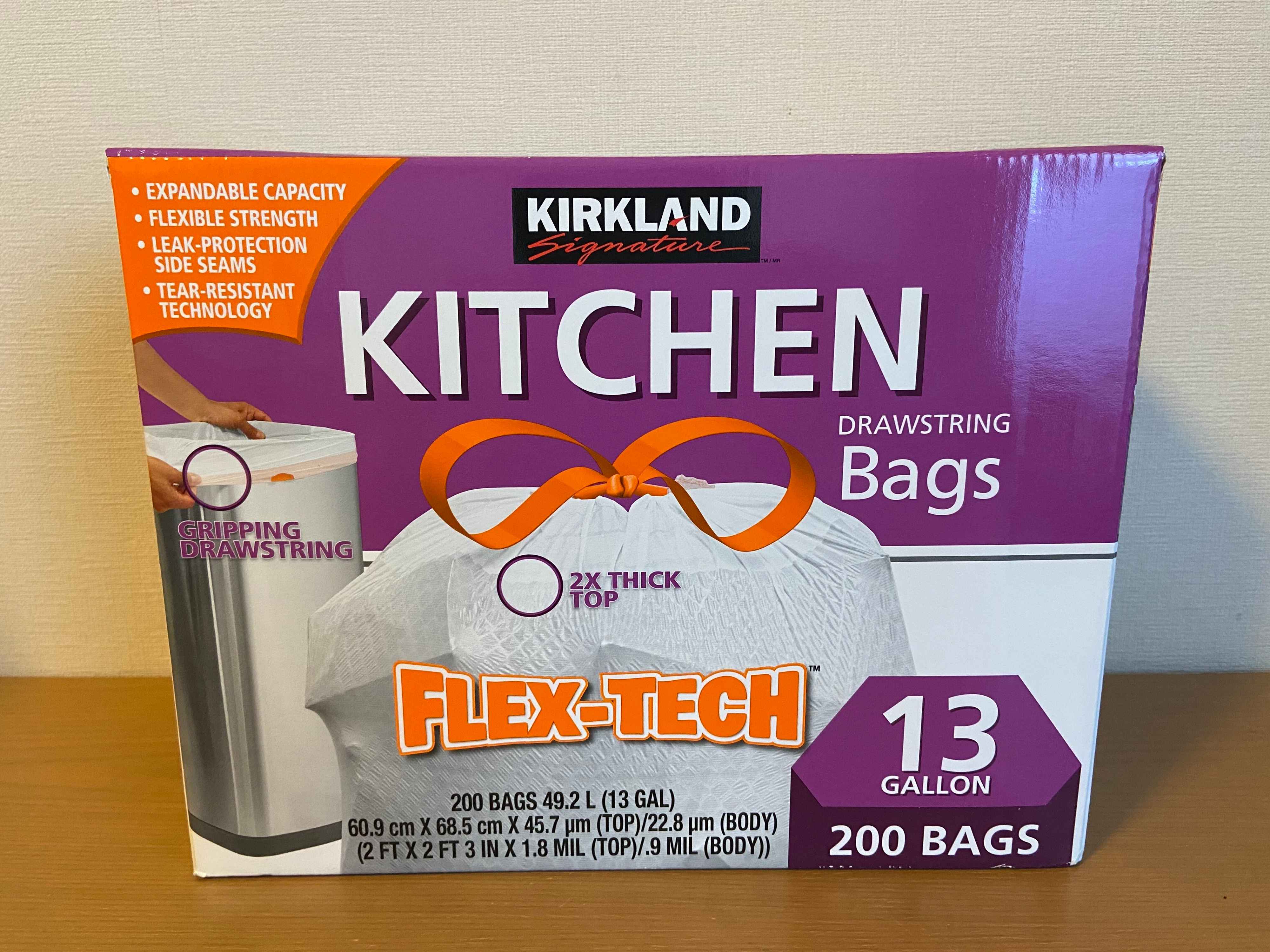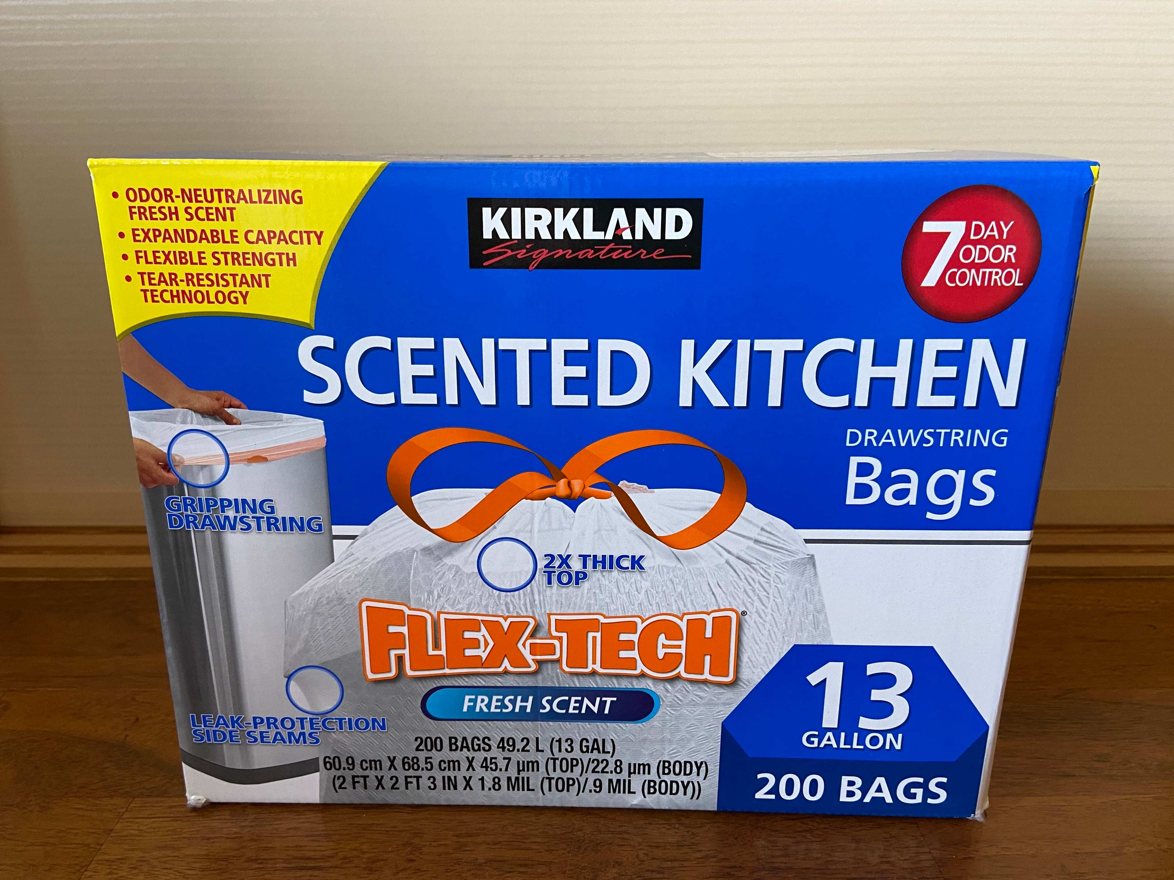 こちらはコストコの定番人気商品として長く販売されていた「ひも付きごみ袋」です。2021年は入荷が不安定で在庫切れだった時期が長く、それまでリピート購入してきた筆者も再入荷を心待ちにしていました。