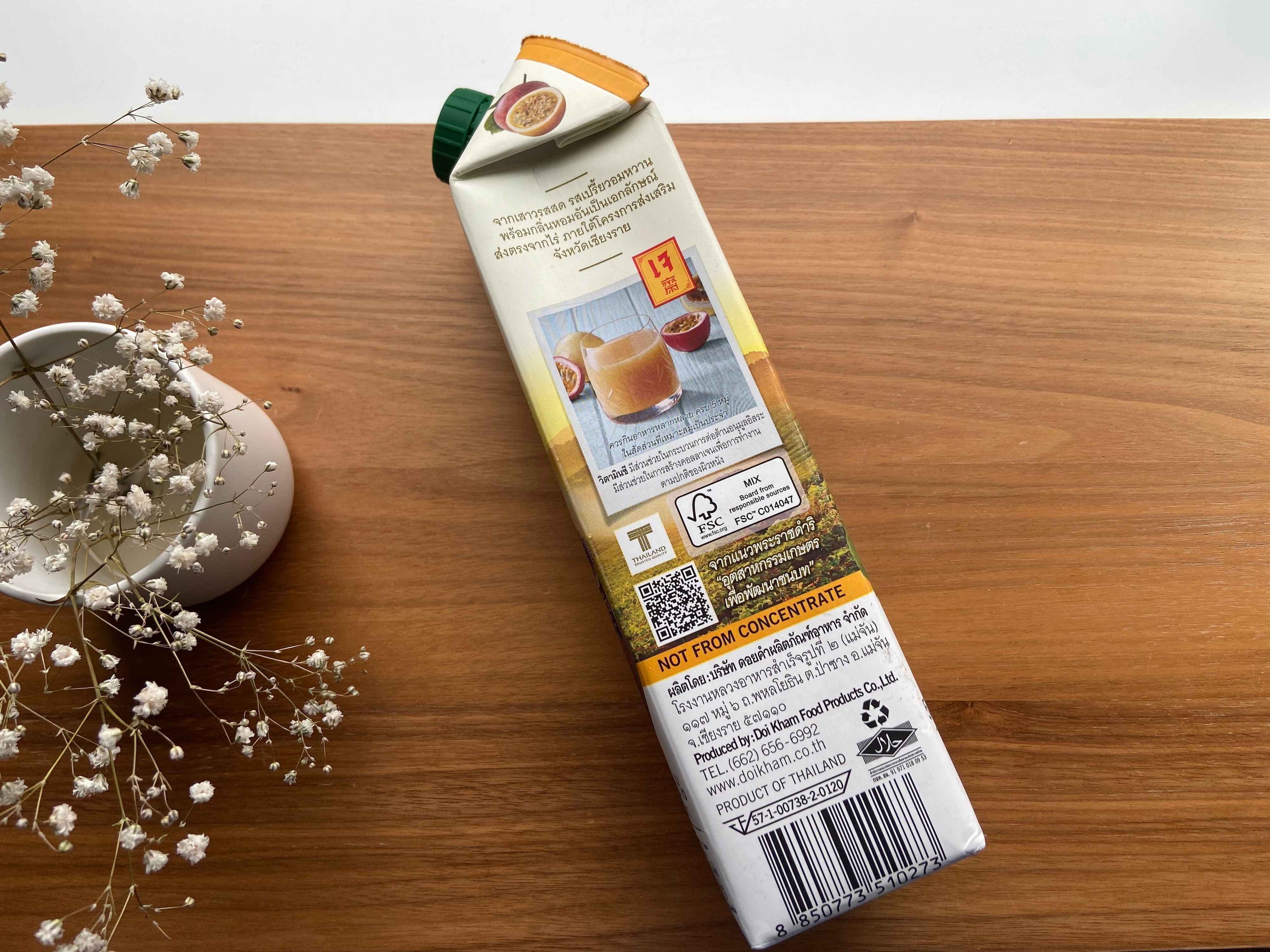 タイ産のドリンク。「ドイカム」とは、タイ王室主導でタイ国民のために始まった「タイ王室プロジェクト(ROYAL FAMILY PROJECT)」のひとつ。農村開発のためのプロジェクトとのこと。タイでよく飲まれているジュースのようです。