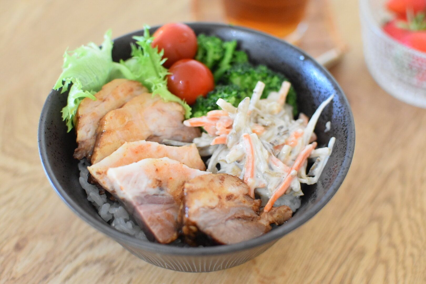 人参とごぼうにたっぷりの自家製ドレッシングに漬かった状態で、ボリューム感に圧倒されてしまいます。ごぼうのシャキシャキ感が味わえる、シンプルにおいしいサラダ。お弁当のおかずにもぴったり!