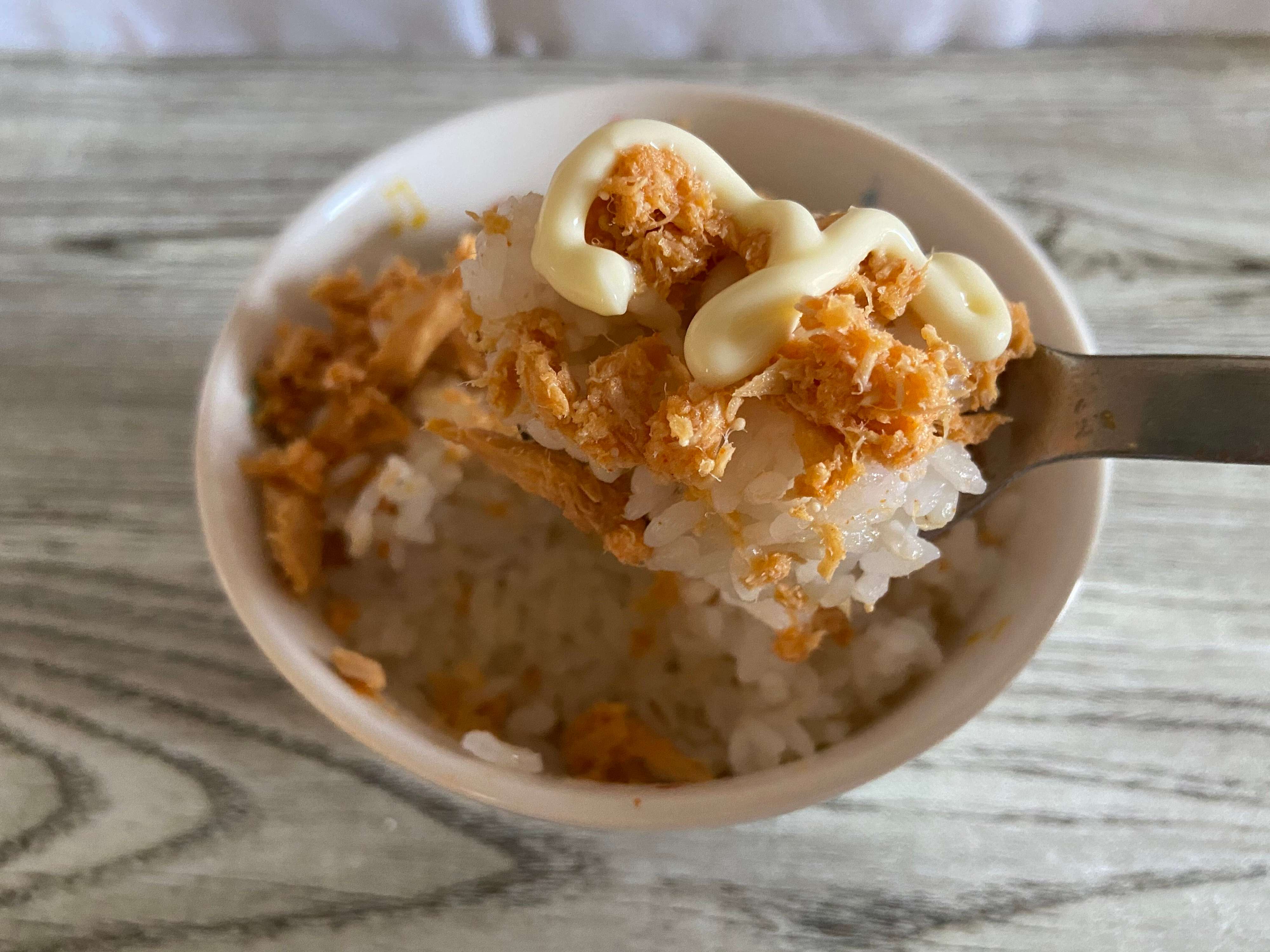 しっとりとしたツナフレークは旨みがたっぷりで、食べ進めるうちにじわじわと辛みがやってきます。予想以上にしっかり辛い!小さいお子さんには厳しい辛さなので、これはやっぱり大人向け!