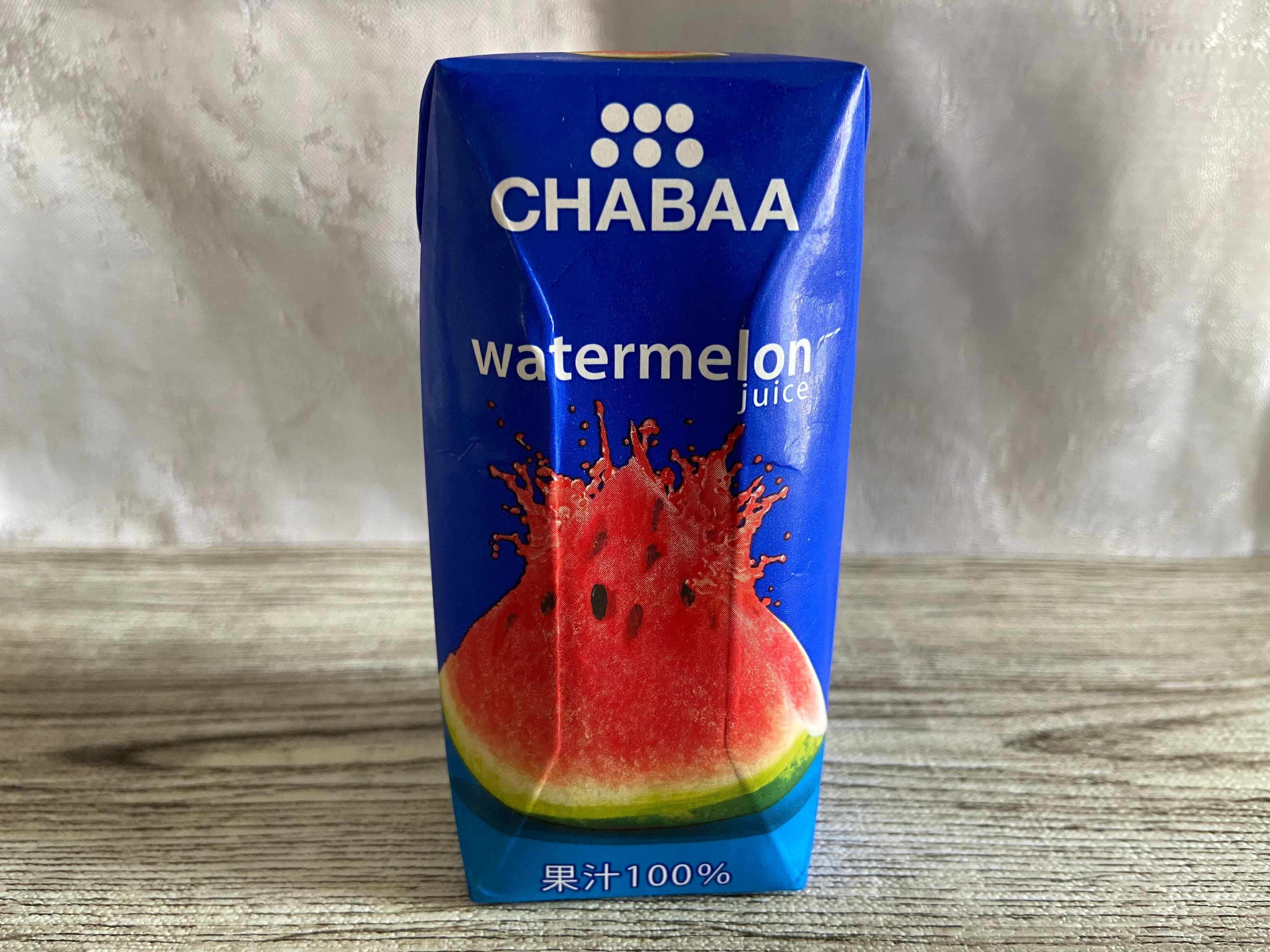 まずはこちら、CHABAAウォーターメロンジュース(購入時:139円)180mlのパックです。