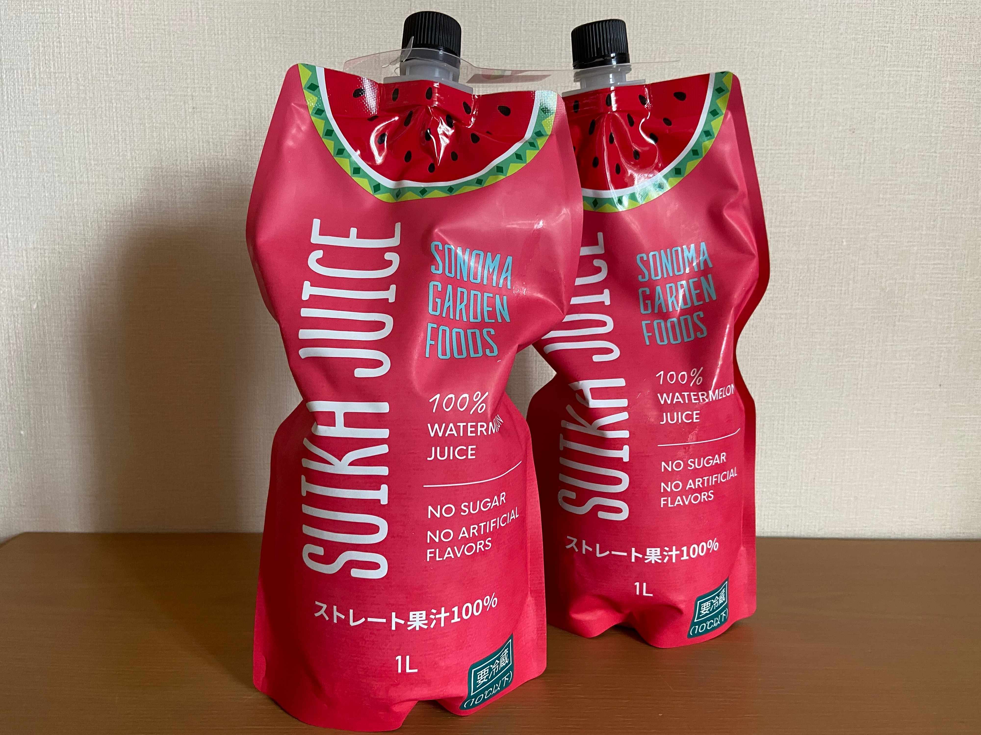 こちらはたっぷり大容量、 SONOMA GARDEN FOODSスイカジュース(購入時:1,498円)です。
