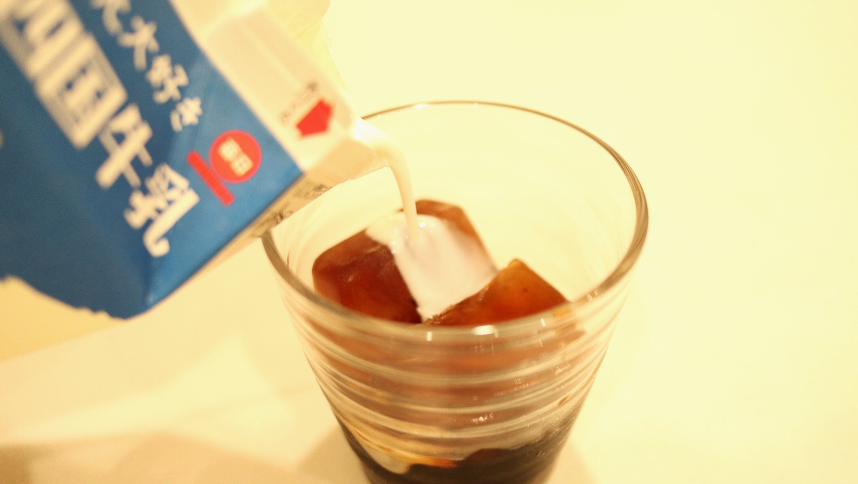 そこに牛乳をグラスの8分目まで注いで完成!