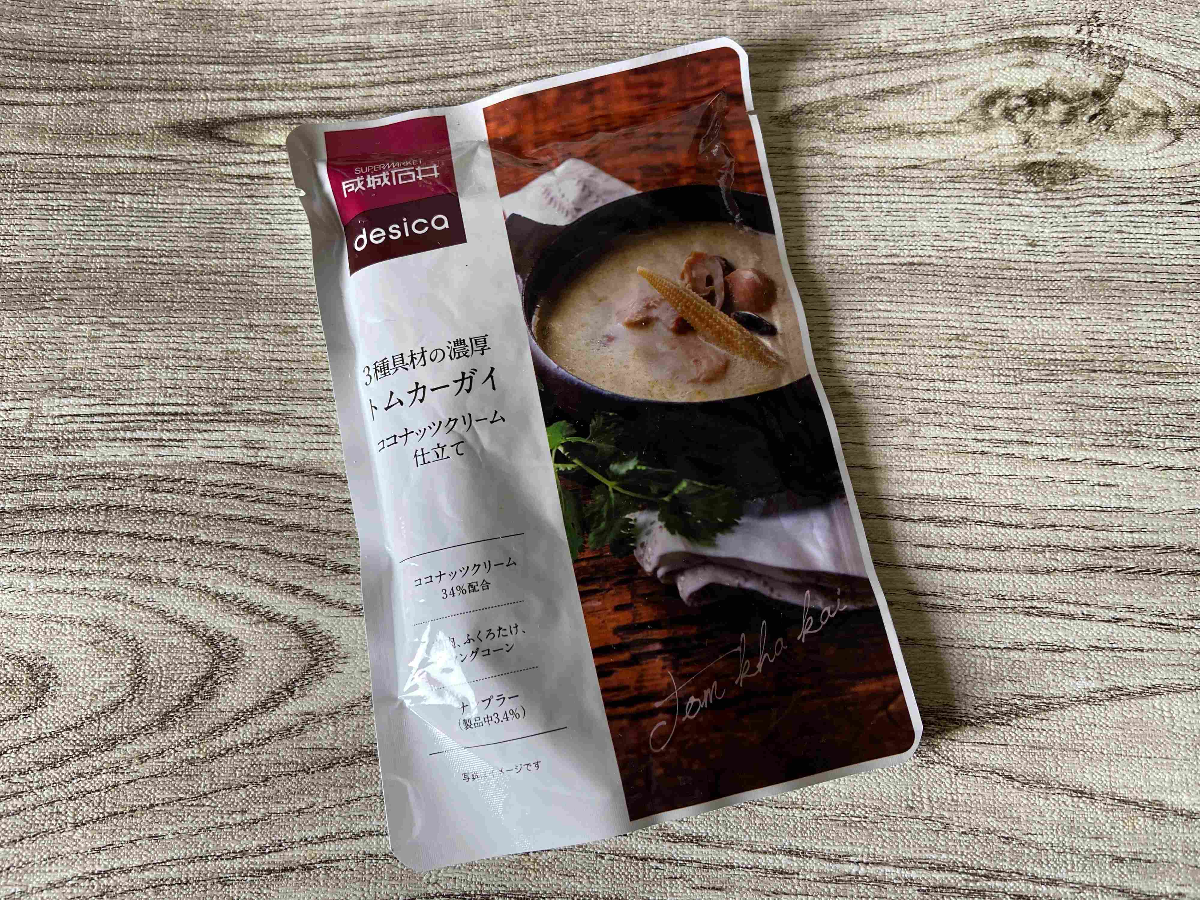まずはこちら「3種具材の濃厚トムカーガイ ココナッツクリーム仕立て」(購入時:431円)。