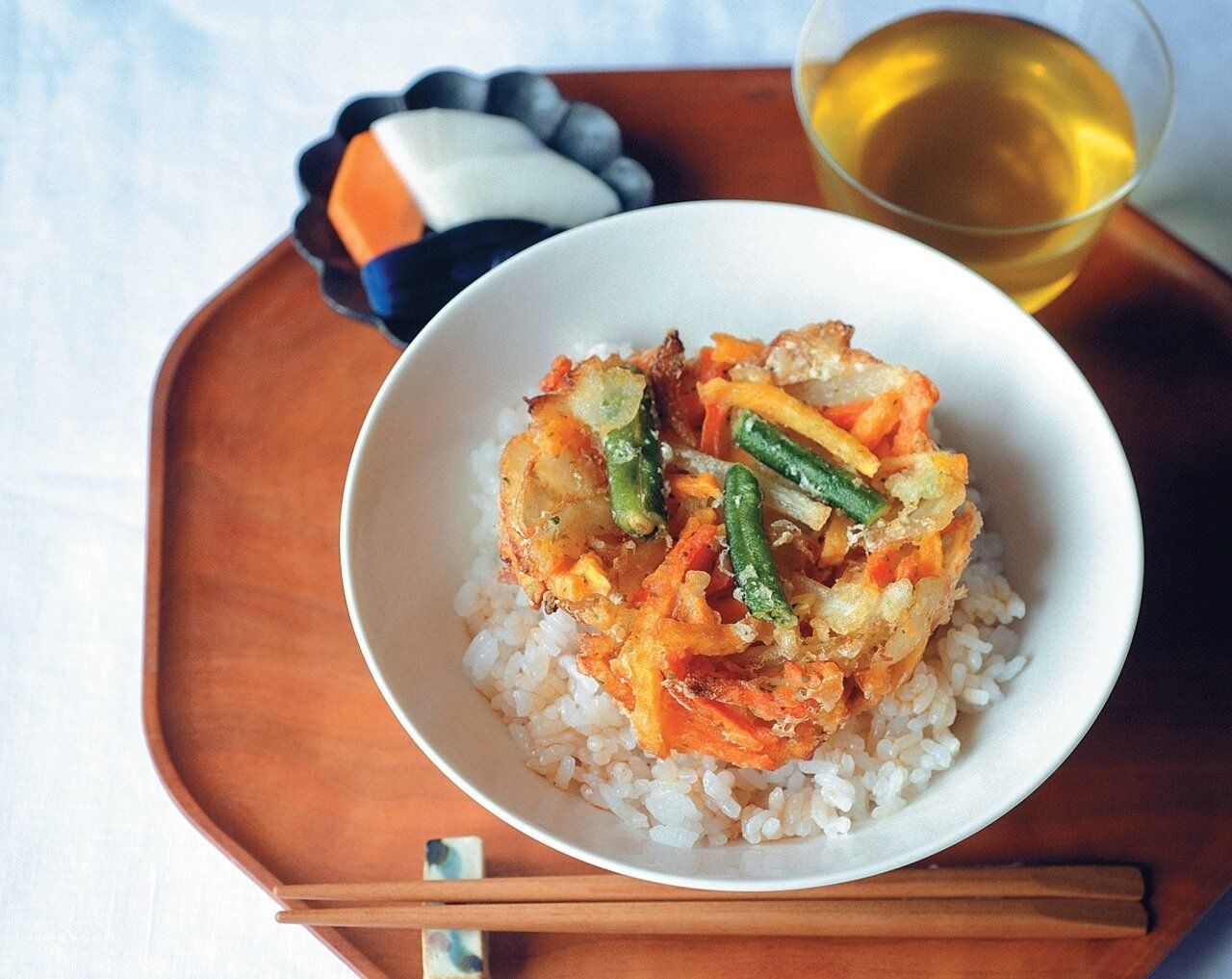 S「一から作ると面倒なかき揚げもこれで!4種類の野菜入りで、食べごたえ十分。どんぶりにぴったりなミニサイズ感もポイントです」。