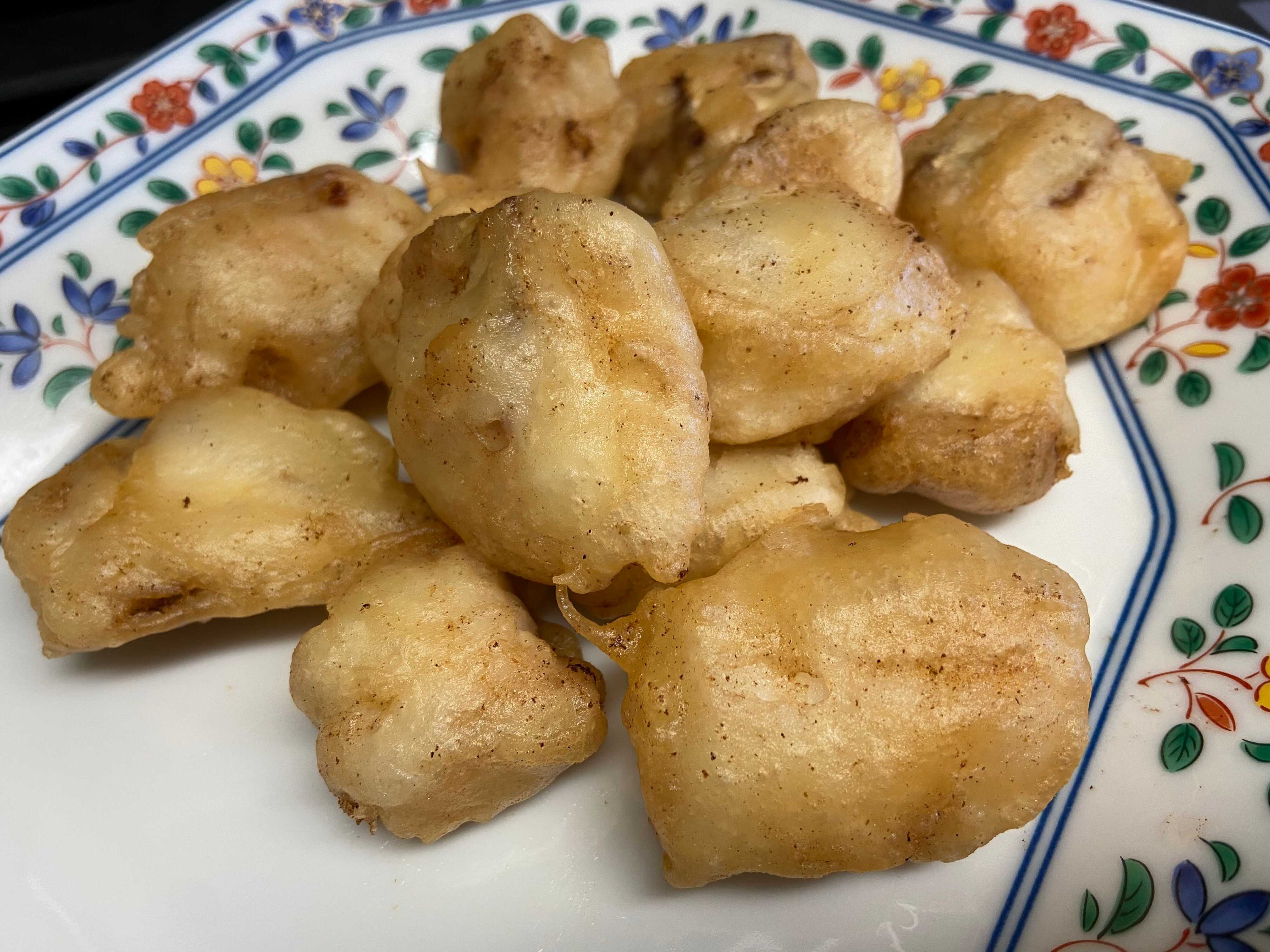 たらの天ぷらをつくってみました。見た目はフリッターのようですが、食べてみるとだしの味がしっかりして揚げたてはサクサクでとってもおいしい!たらもふんわりと揚がっていて相性抜群のおいしさでした。