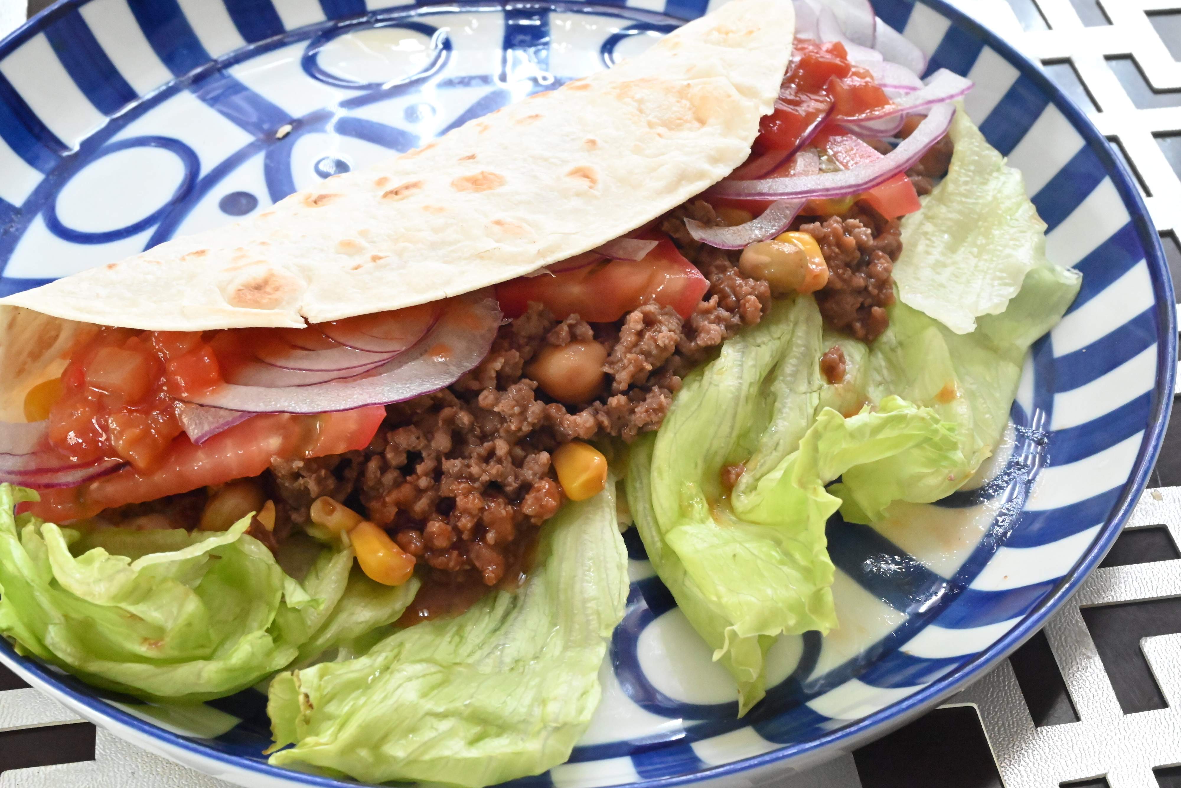 レタス、ミートソースを用意し、あとはお好みの具材を挟めば本格的なトルティーヤの完成です。