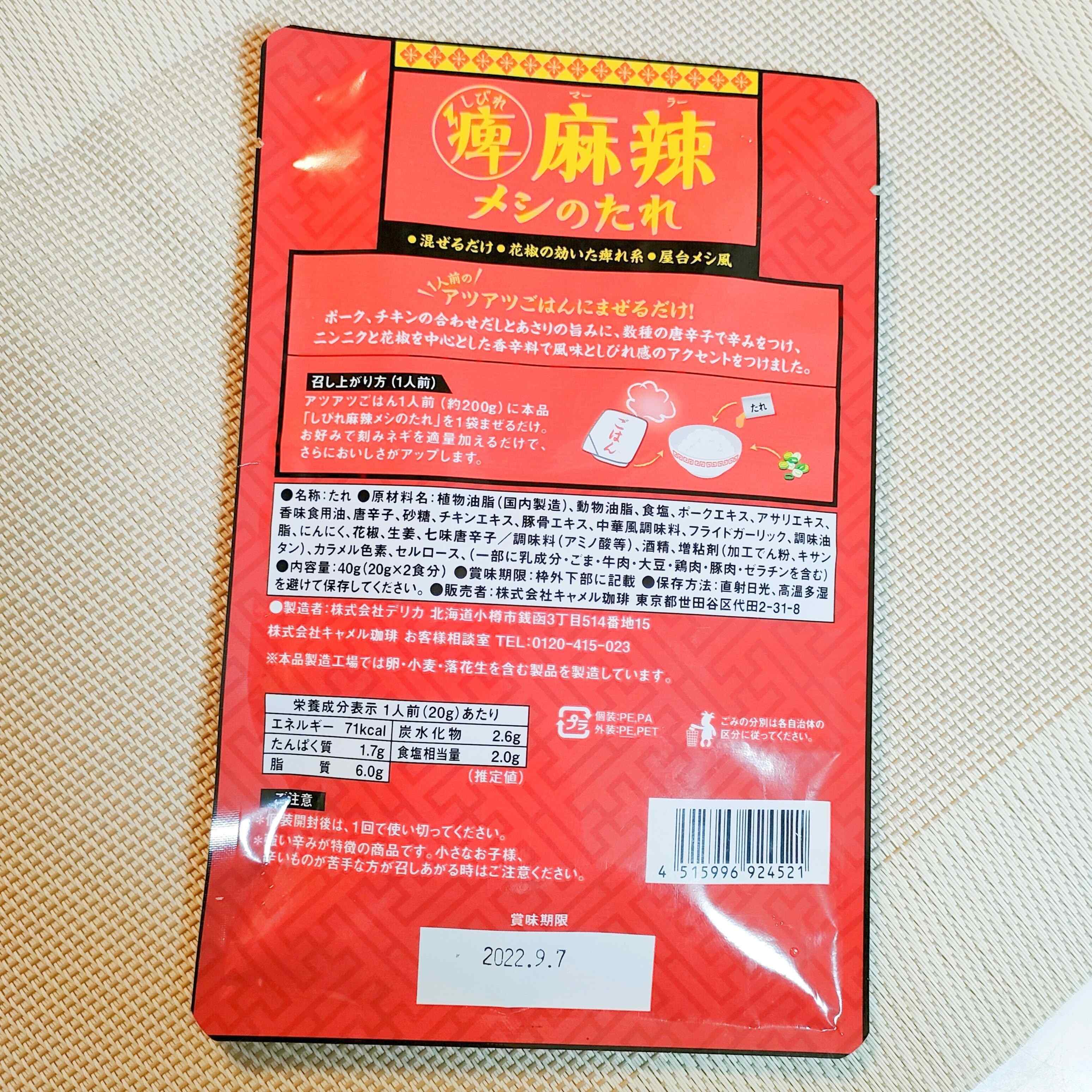 こちらがご紹介する「しびれ麻辣メシのたれ」40g 198円です。