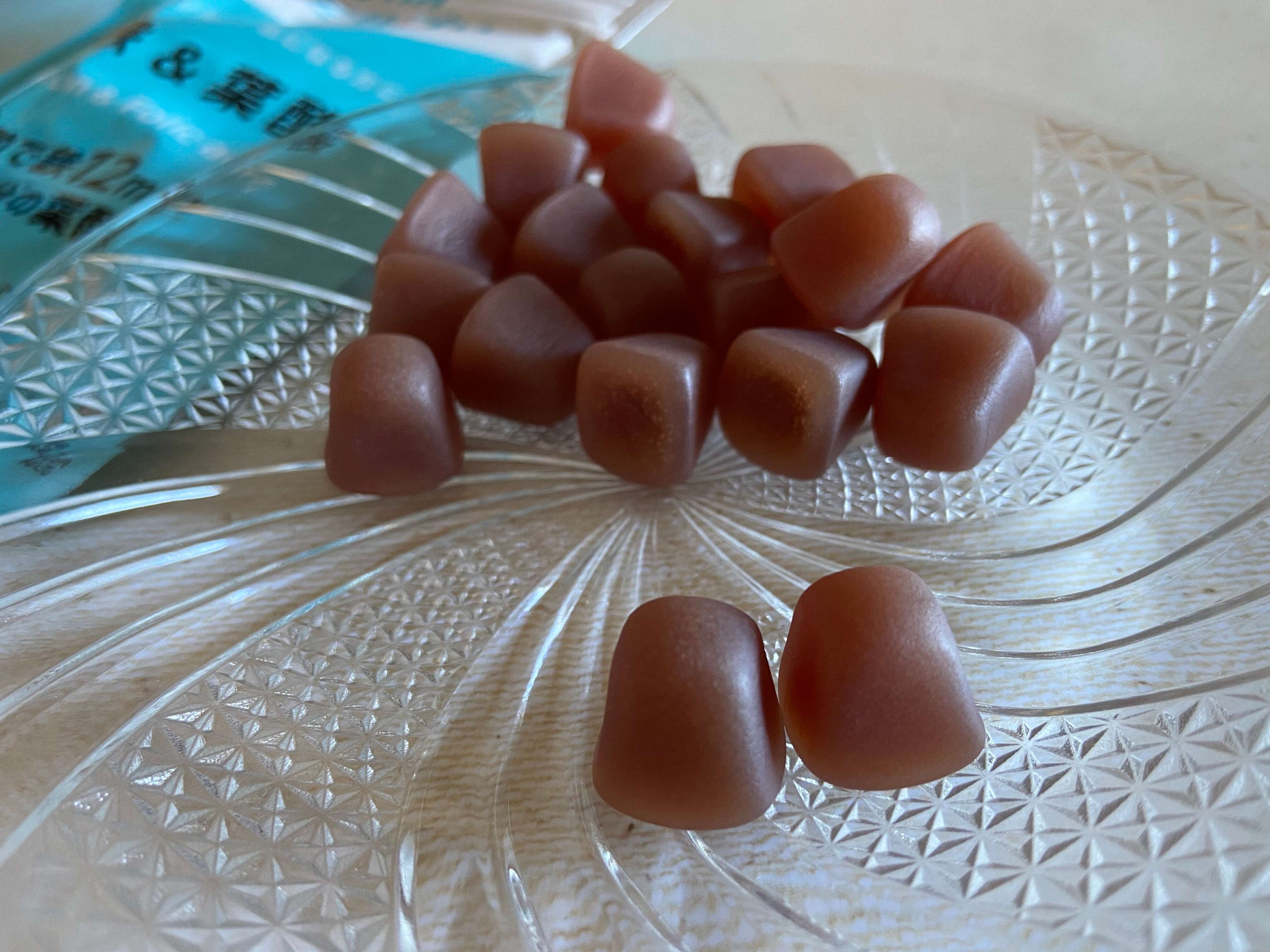 1日の摂取量は2粒。この2粒に鉄12mgと一日分の葉酸240μgが含まれているとのこと。おいしくて2粒以上食べたくなってしまうのですが、「1日の摂取目安量を守ってください」との記載もあり、ぐっと我慢しています。