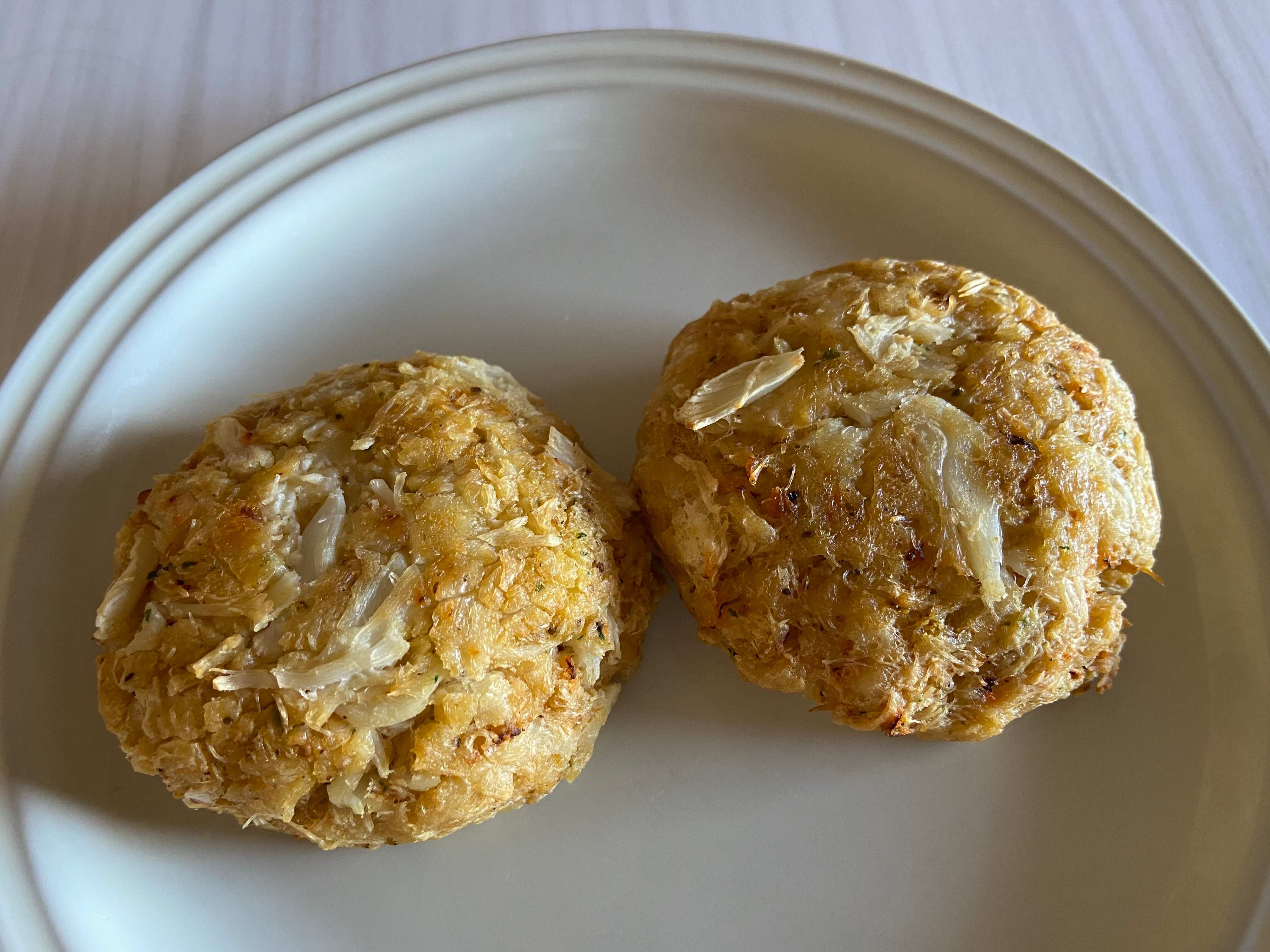 調理方法は2通り。解凍したクラブケーキをフライパンかオーブンで焼きます。筆者はオーブン調理で、200℃15分ほど焼きました。