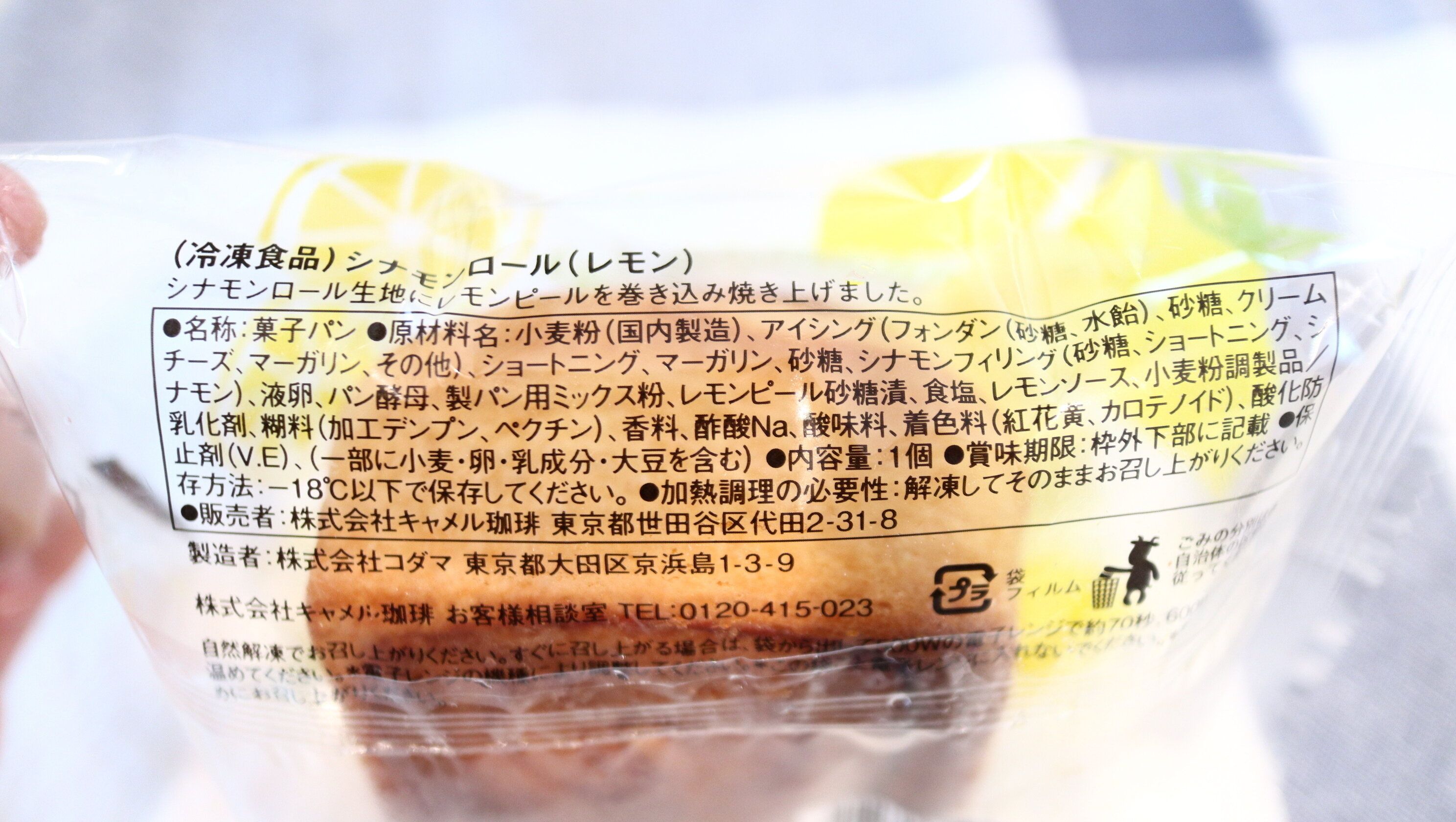 もっちり食感のシナモンロールにシロップに漬けたダイスカットレモンを入れて焼き上げた、オリジナルの冷凍シナモンロールです。(カルディホームページより)