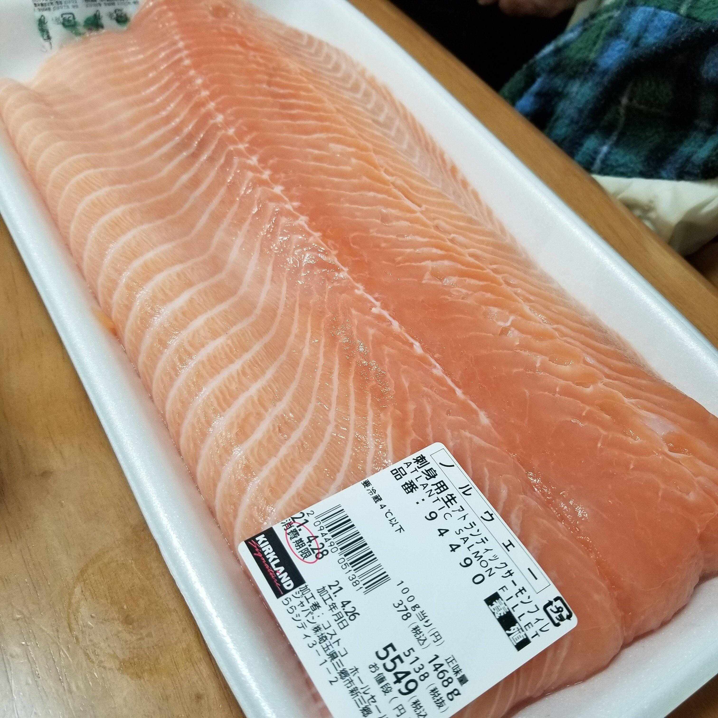 一度も冷凍されることなく空輸されるサーモンはとても新鮮で脂がのっていておいしいです。こちらもコストコならではの大容量で、たっぷり楽しむことができますが、食べきれない場合は柵状に切って冷凍するのもよいでしょう。