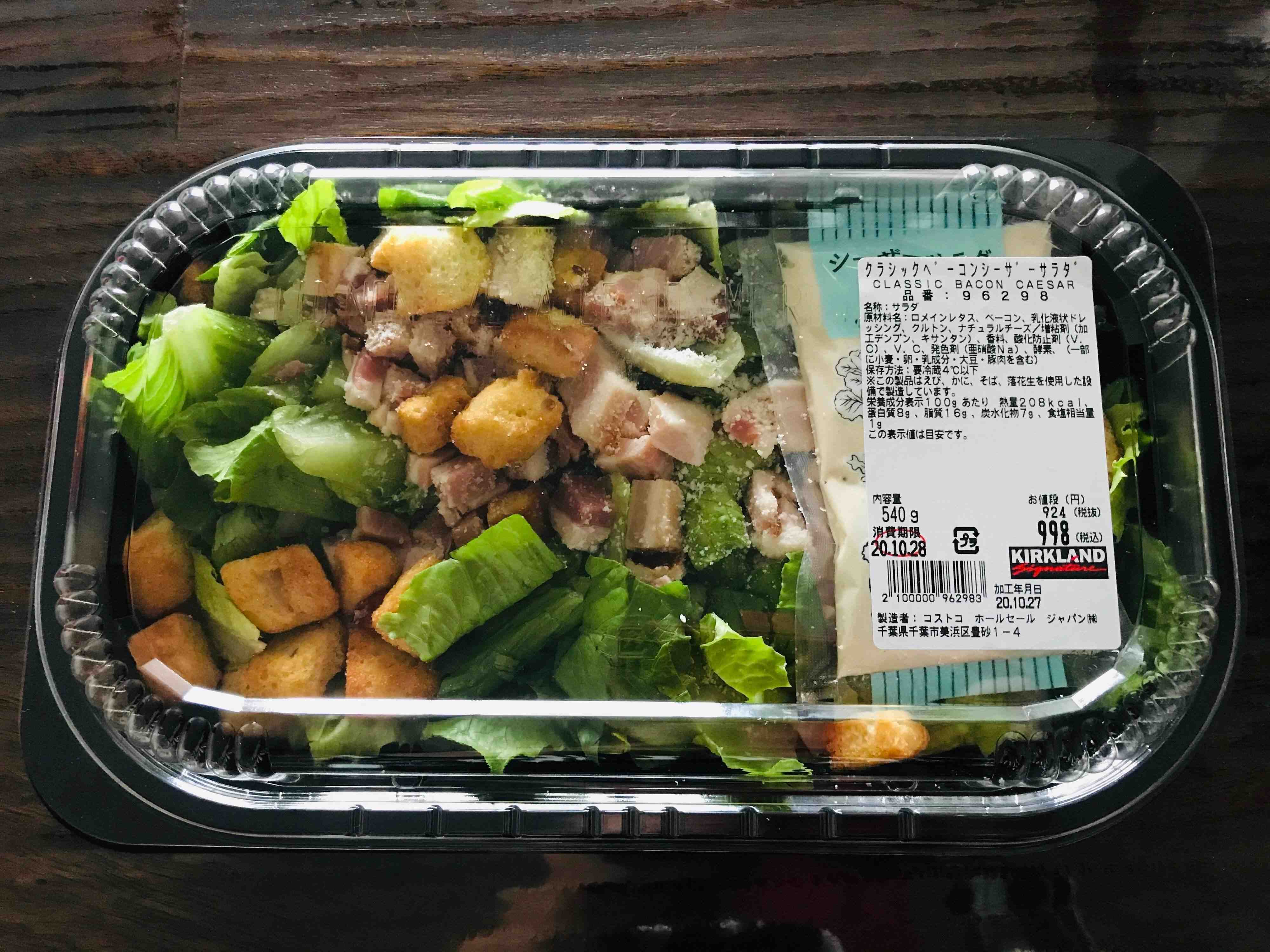 コストコの「クラシックベーコンシーザーサラダ」はサイコロ状のベーコンがゴロゴロと入っていて、とてもおいしくおすすめの食べ物です。