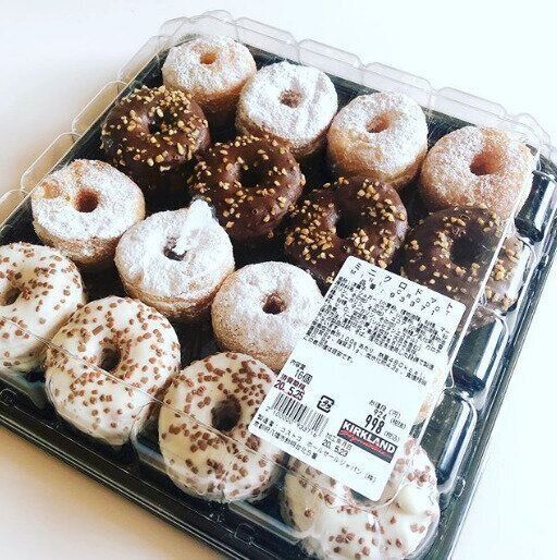 コストコの「ミニクロドット」は、少し小さめの3種類のドーナツが16個入った商品です。シュガーとチョコレート、ホワイトチョコレートの3種類の味を楽しむことができ、ドーナツ生地はクロワッサンのような生地でふつうのドーナツよりあっさりといただけます。