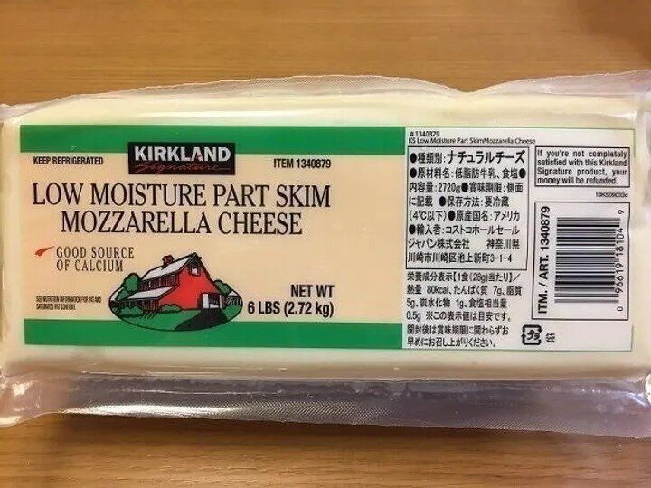 コストコならではの大容量「モッツアレラローフ」もおすすめです。3kg近い重さのモッツァレラチーズが塊で販売されています。