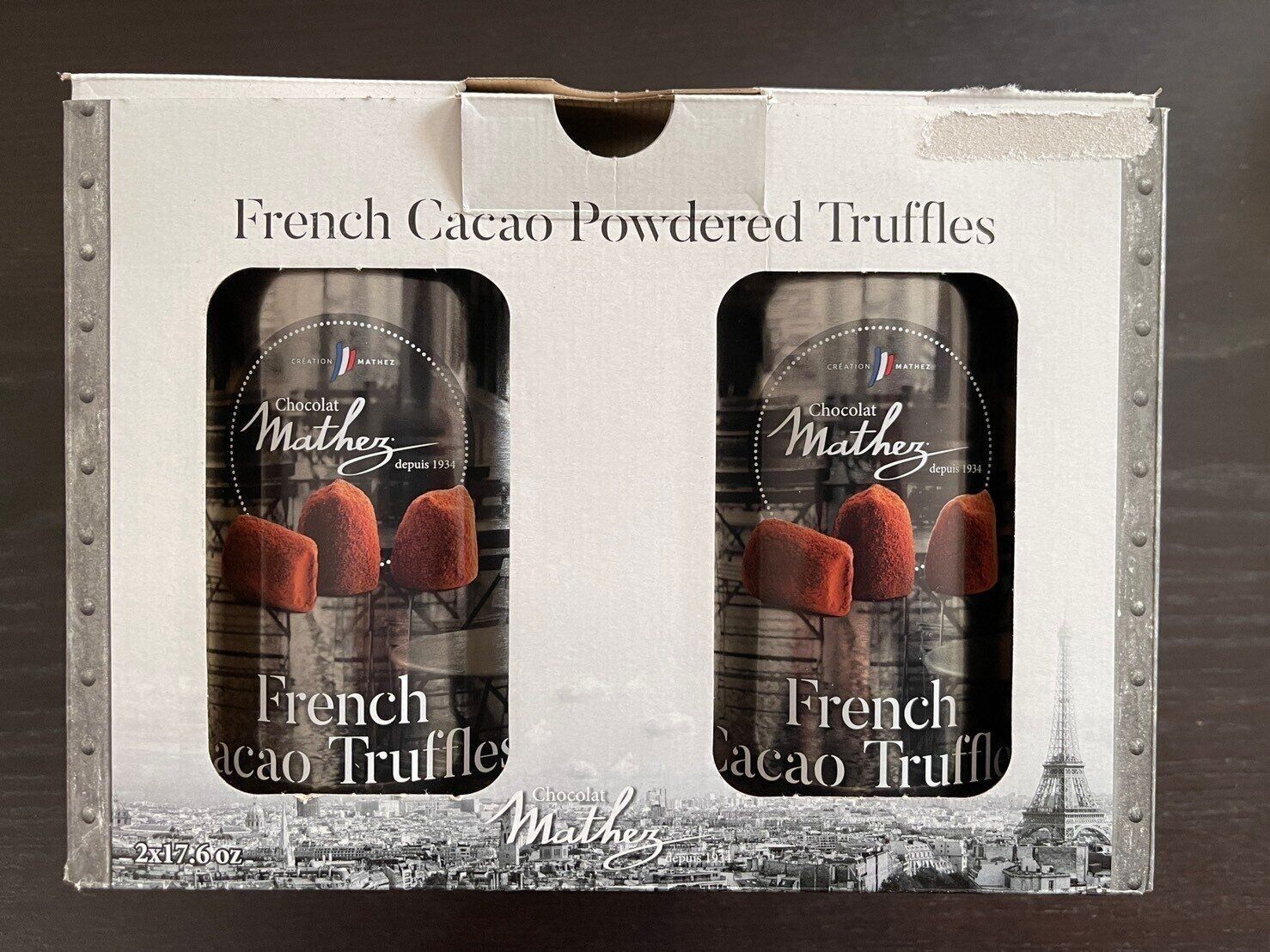 「マセズフレンチプレーントリュフ」は500gの2缶セットで1つの缶に2袋のトリュフが入っています。たくさん入っていて1粒当たりおよそ10円とトリュフなのにとても安いです。
