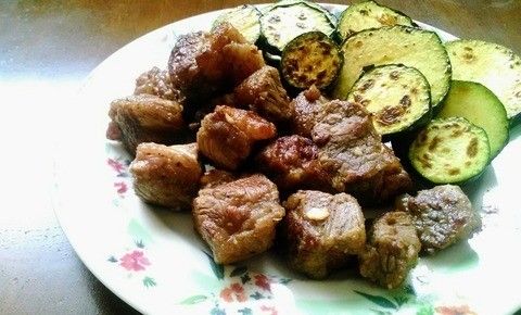 コストコの「ビーフリブフィンガー」は真空パック状になっていて、大容量ながら細い棒状になっているため処理がしやすくおすすめです。ぶつ切りにして焼くだけで、簡単にサイコロステーキができます。