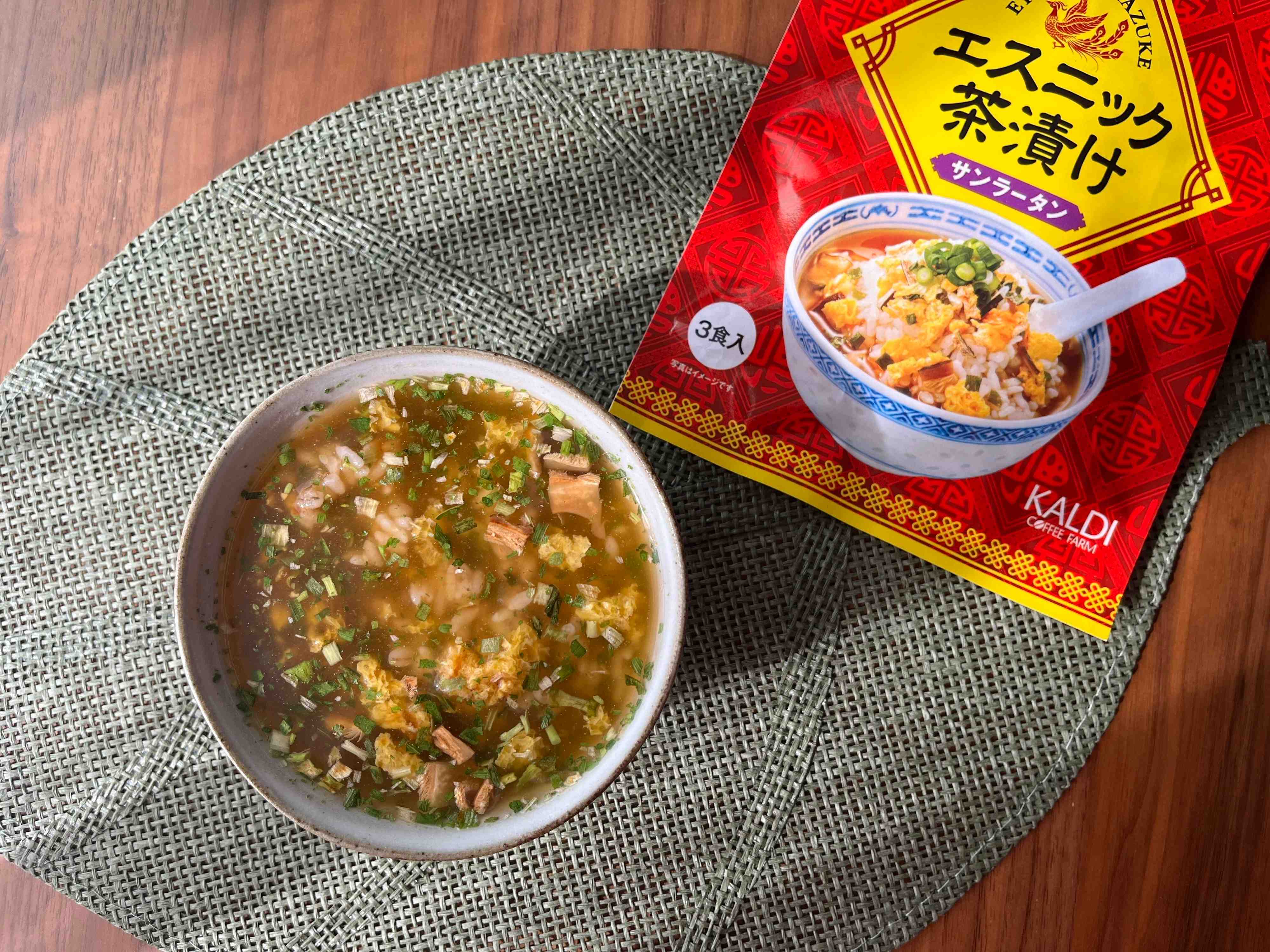 カルディの「エスニック茶漬け」シリーズから、<サンラータン>が新発売。以前話題になった<トムヤムクン>に続いてヒットの予感…!!早速試してみました。