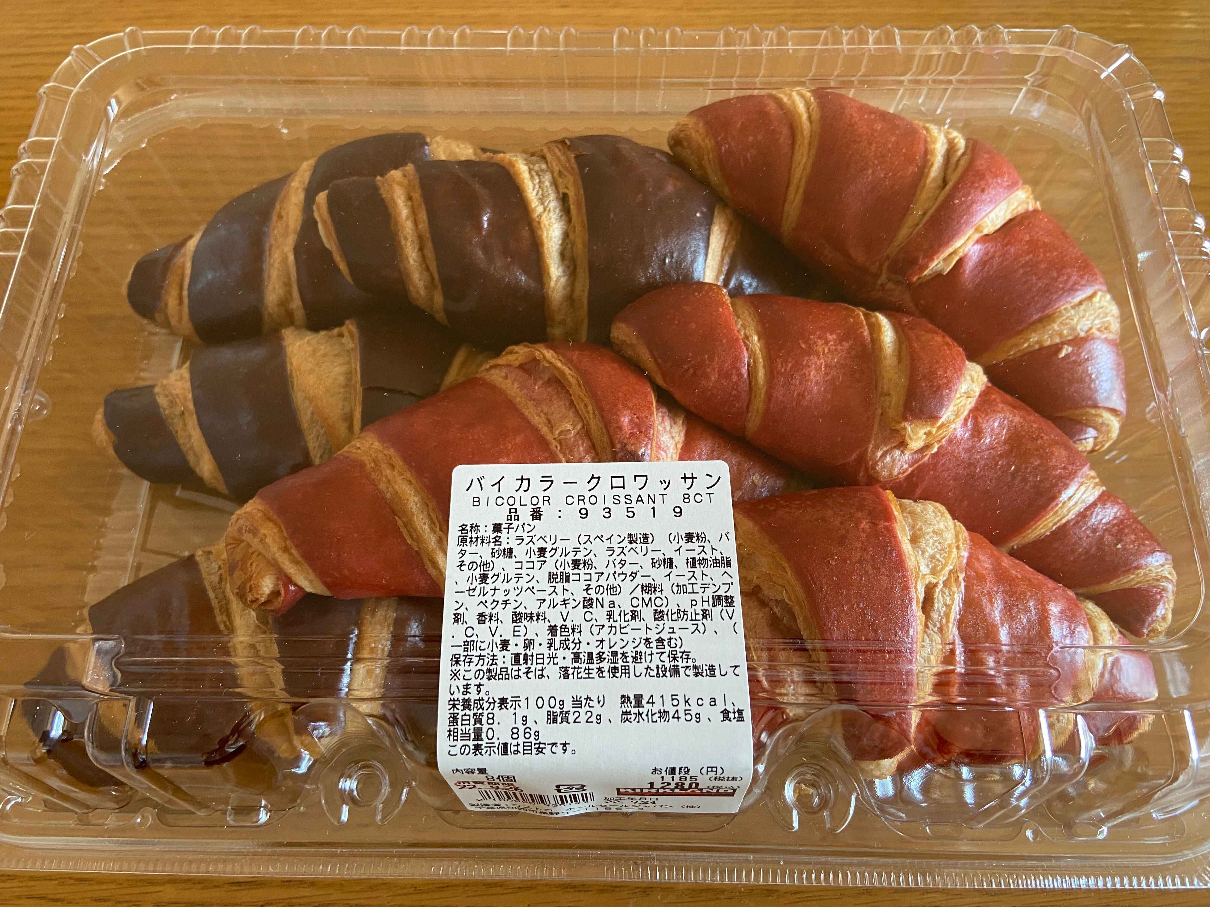 コストコのベーカリーコーナーにカラフルな新商品が登場!「バイカラークロワッサン」(購入時:1,280円)です。
