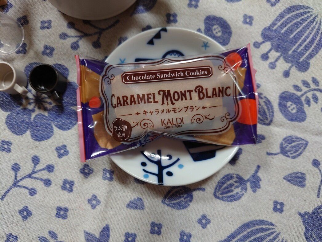 チョコレートサンドクッキー キャラメルモンブラン 166円。
