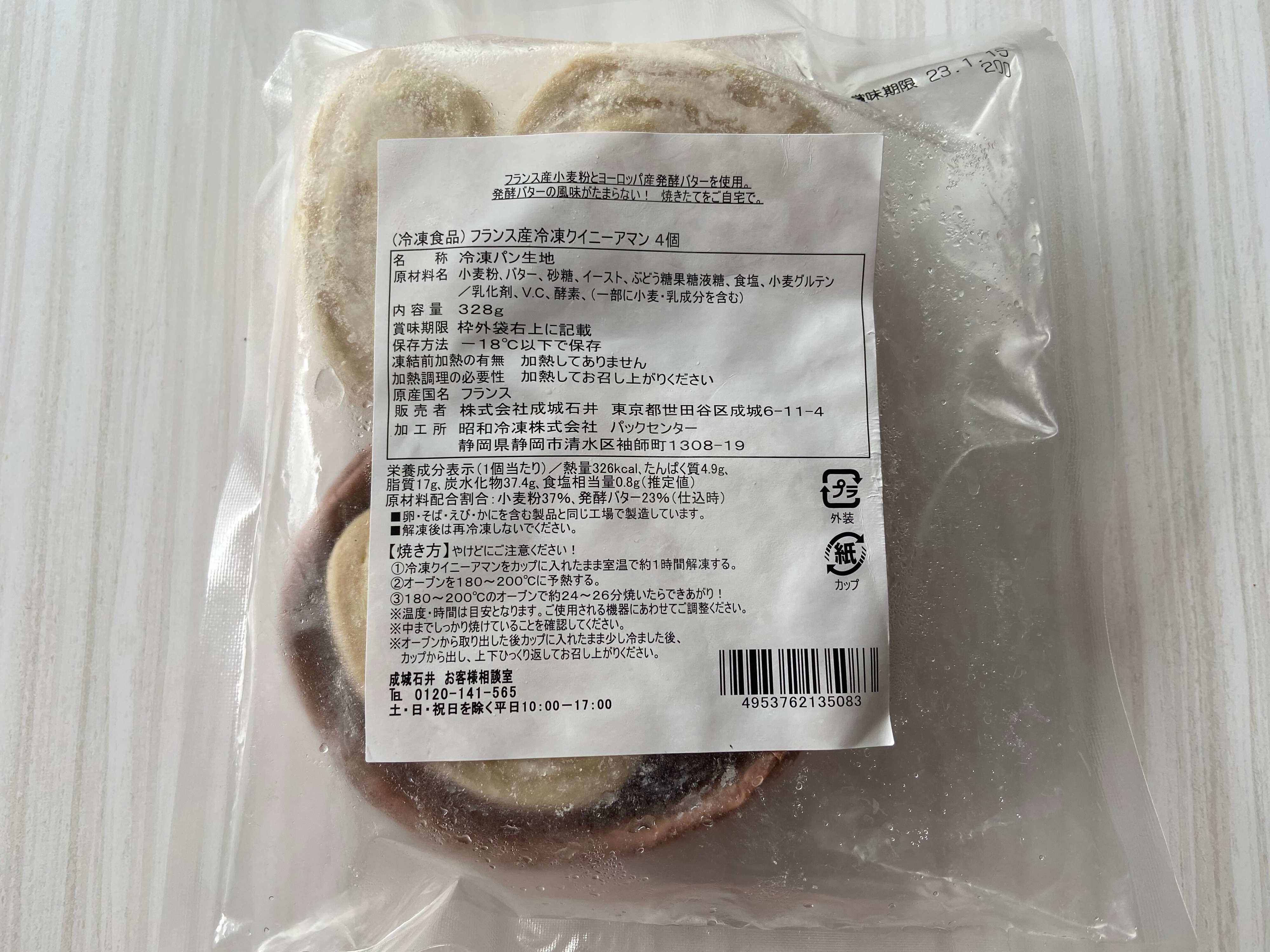 今回紹介するのはクイニーアマン(購入時:863円)です。フランス直輸入の本場の冷凍パン生地が4個入っています。