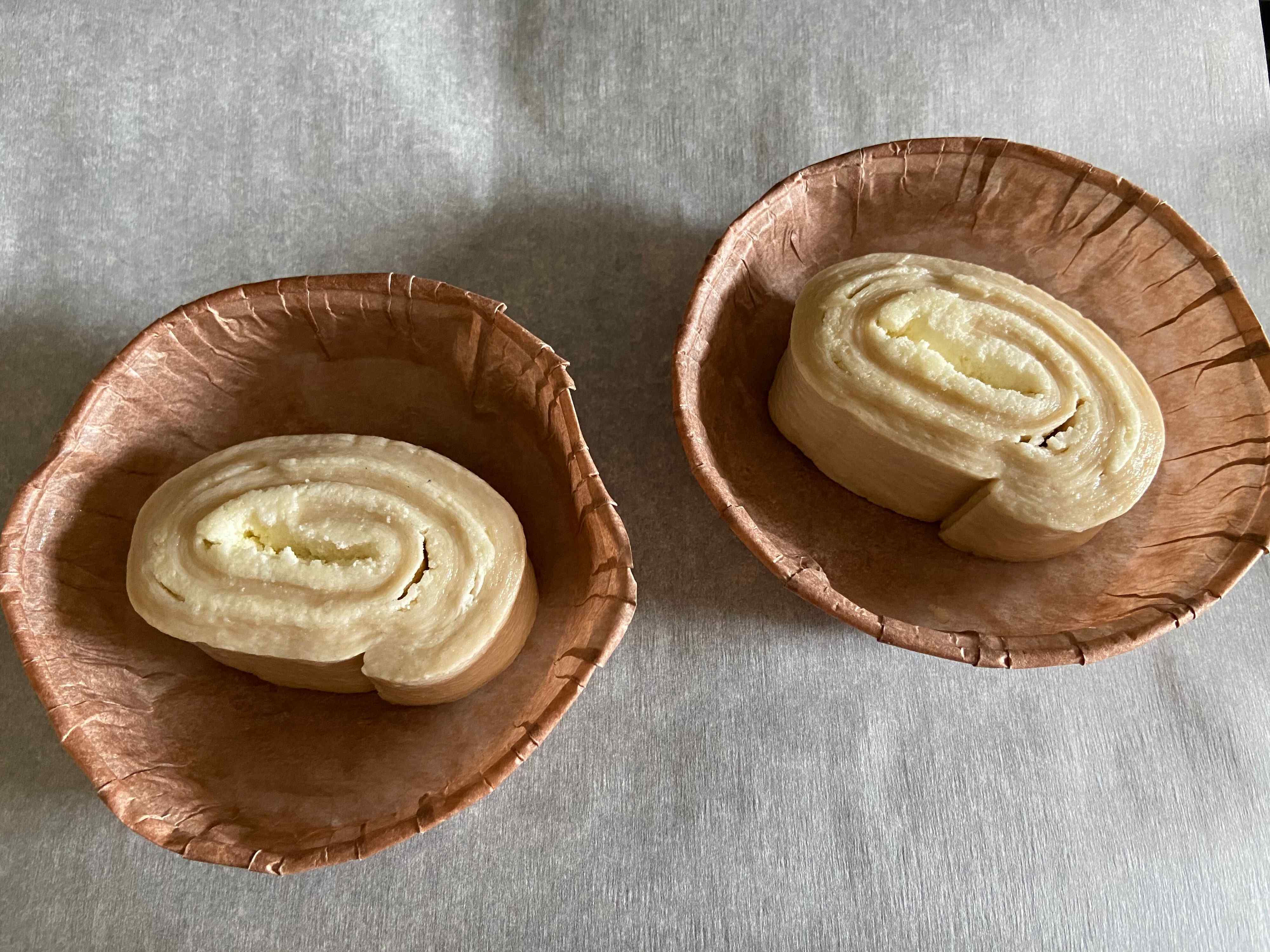 パン生地と一緒に紙の容器も入っているので、そこに1つずつセットしてからオーブン180度25分焼成しました。