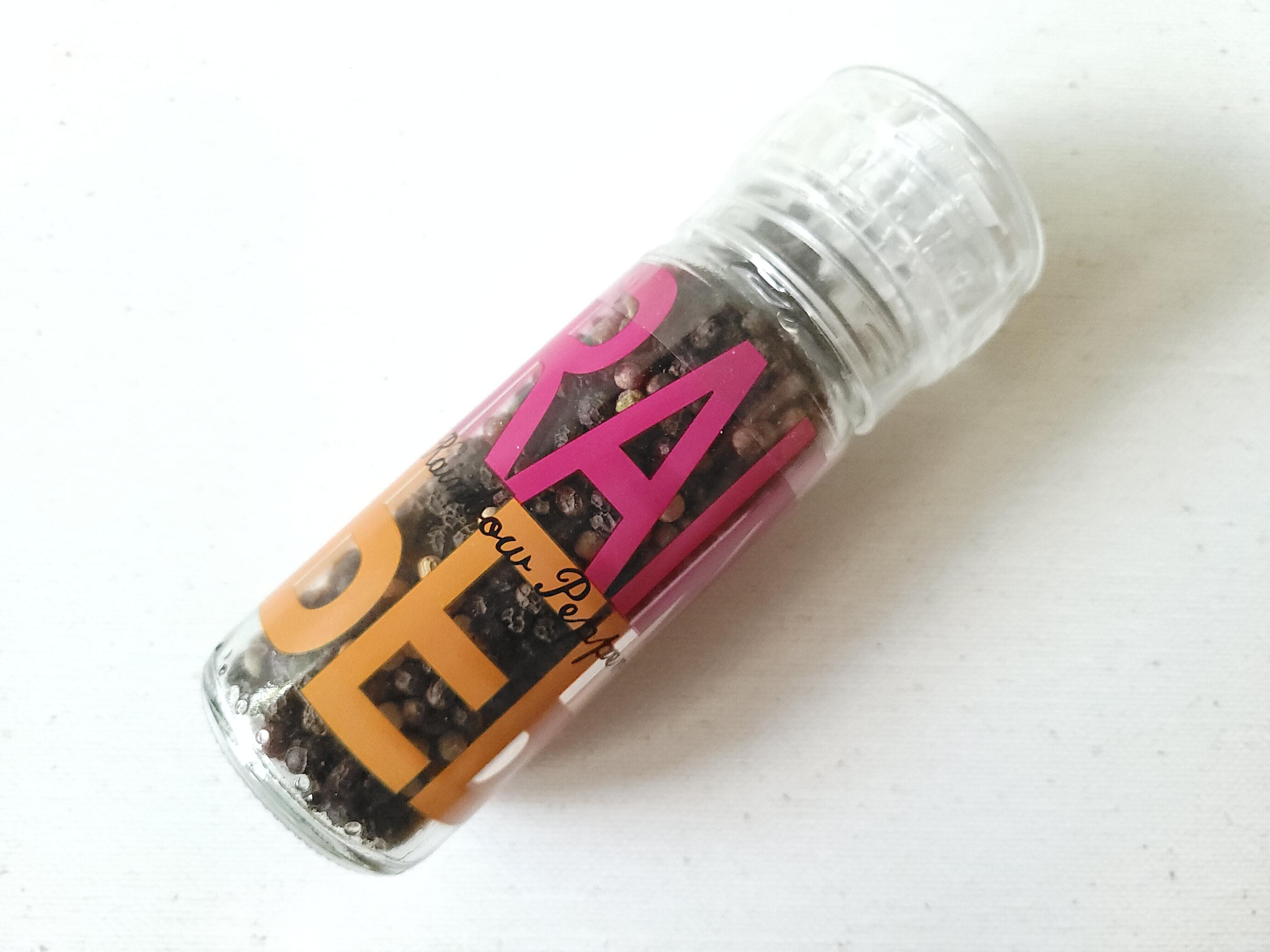 ブラックペッパーだけでなく、ホワイトペッパー、ピンクペッパー、グリーンペッパーもミックスされているので、ブラックペッパー単体よりも香りや風味に奥深さが加わった感じで、料理にもう一押しアクセントをつけたい時に活躍してくれます。