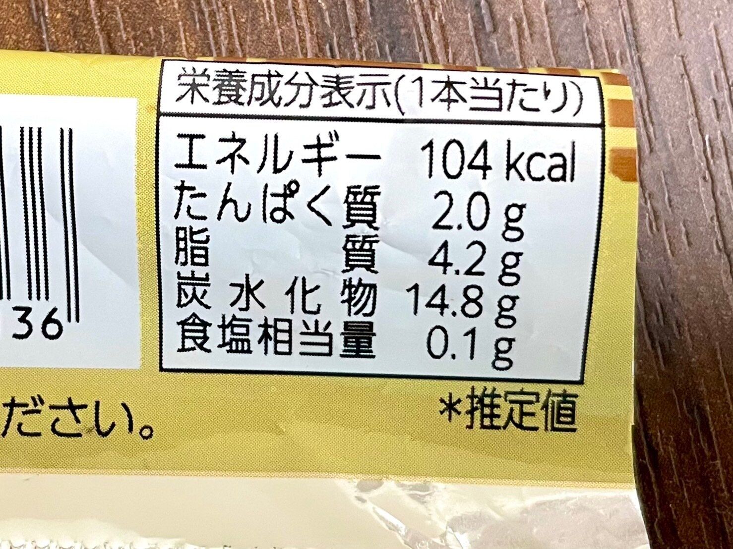 1つあたり104kcalとかなり低め。このカロリーなら罪悪感なくいただけます。