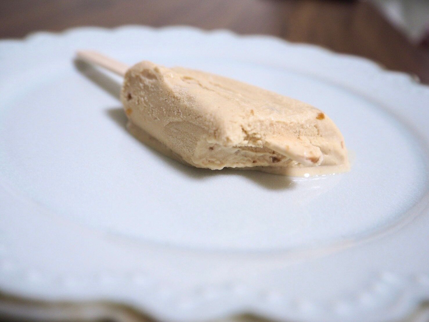 パッケージの裏に、「柔らかいのでお気をつけください」と表記がありましたが、このアイス本当に柔らかいです。