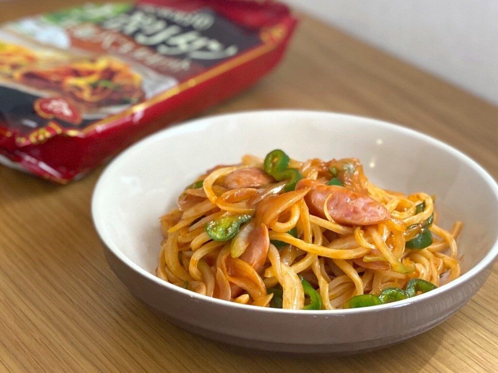太麺のモチモチ食感と甘めのソースは今までに食べたナポリタンとは違う味わいで、カルディオリジナルのこだわりを感じました。