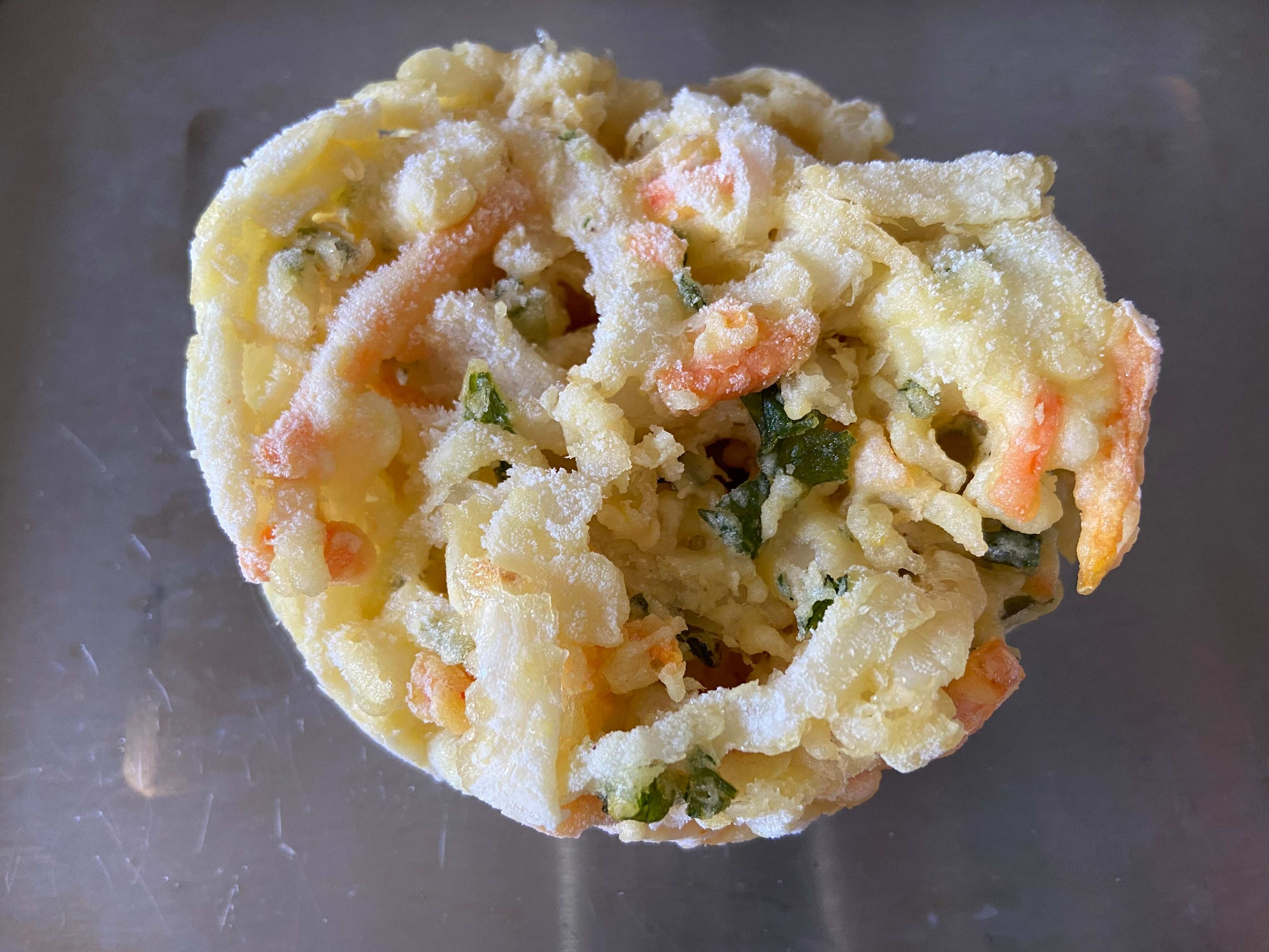 業務スーパーの新商品、大きなかき揚げは1個当たり約108円とコスパも抜群。ぜひ揚げたてのおいしさを味わってみてくださいね。