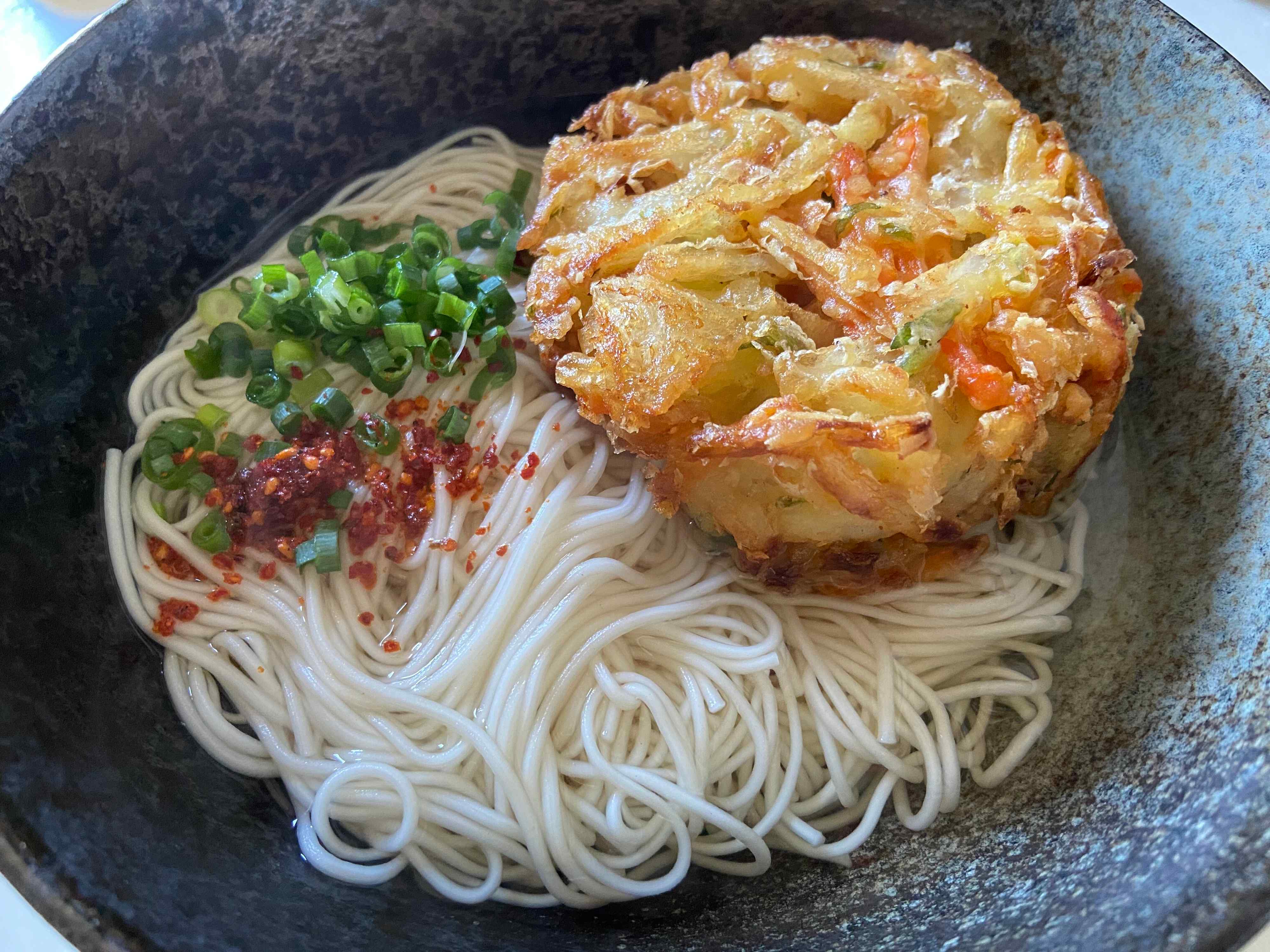 サクサク、ザクザク食感が香ばしくて野菜の甘みも感じてとってもおいしい!揚げたてでサクサクの部分と汁に浸ってしんなりしている部分とどちらも違った味わいが楽しめていいですね。