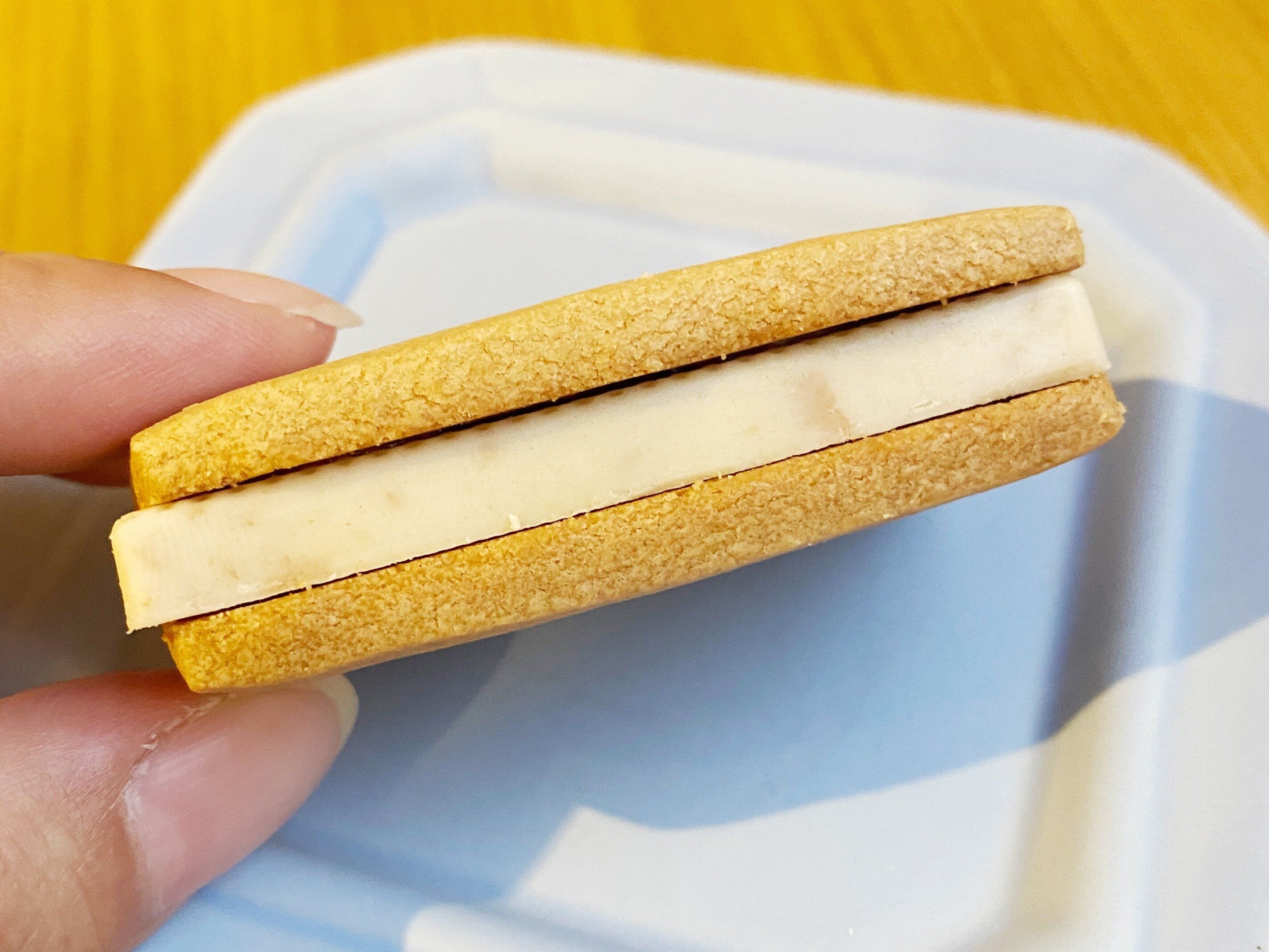 クッキーはサクサクで噛むたびに発酵バターが香ります。口どけのよいホワイトチョコに、程よく感じるりんごとシナモンのフレーバーがよく合います。