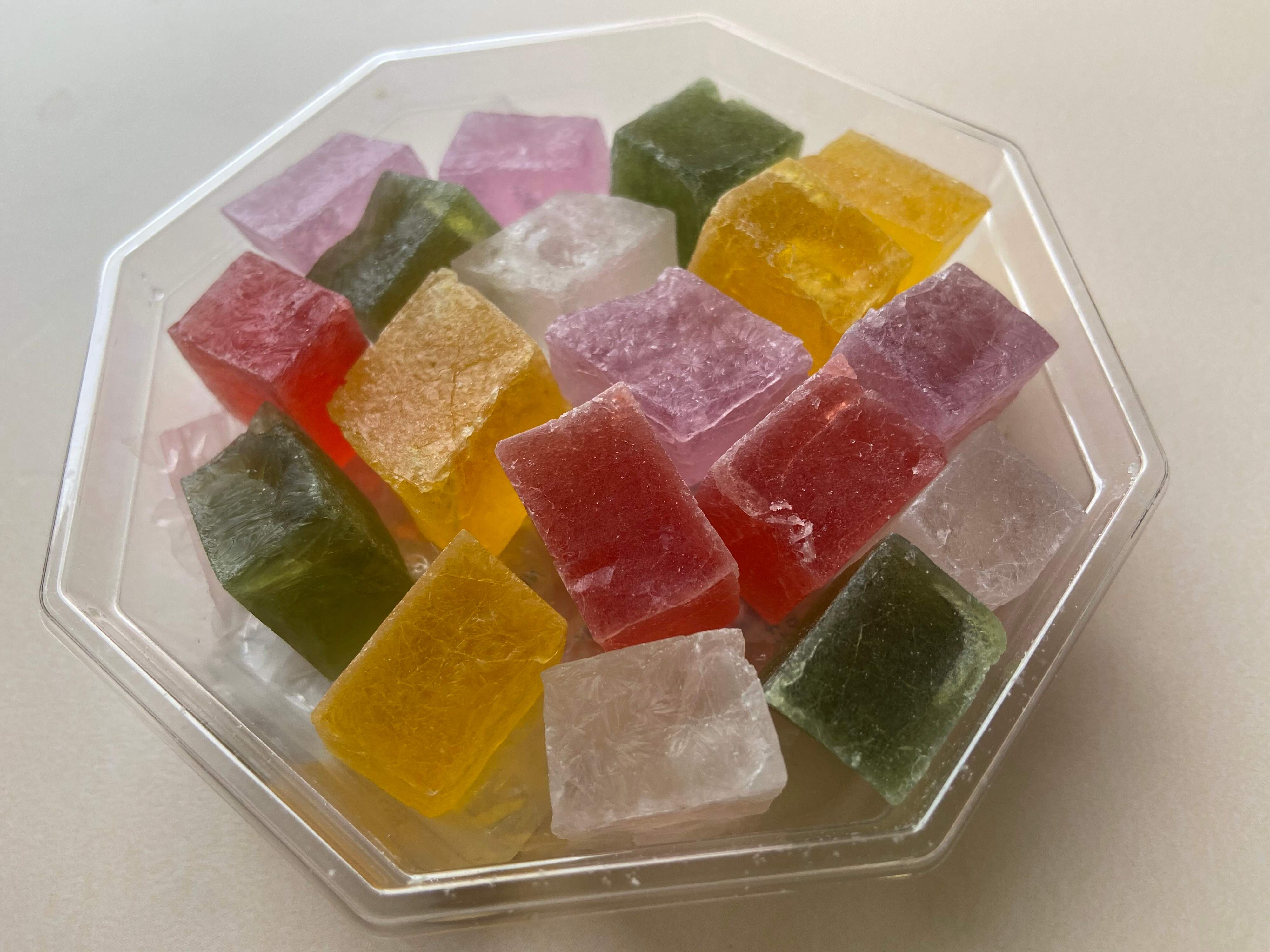 フタを開けると、色とりどりの一口サイズの琥珀糖が。