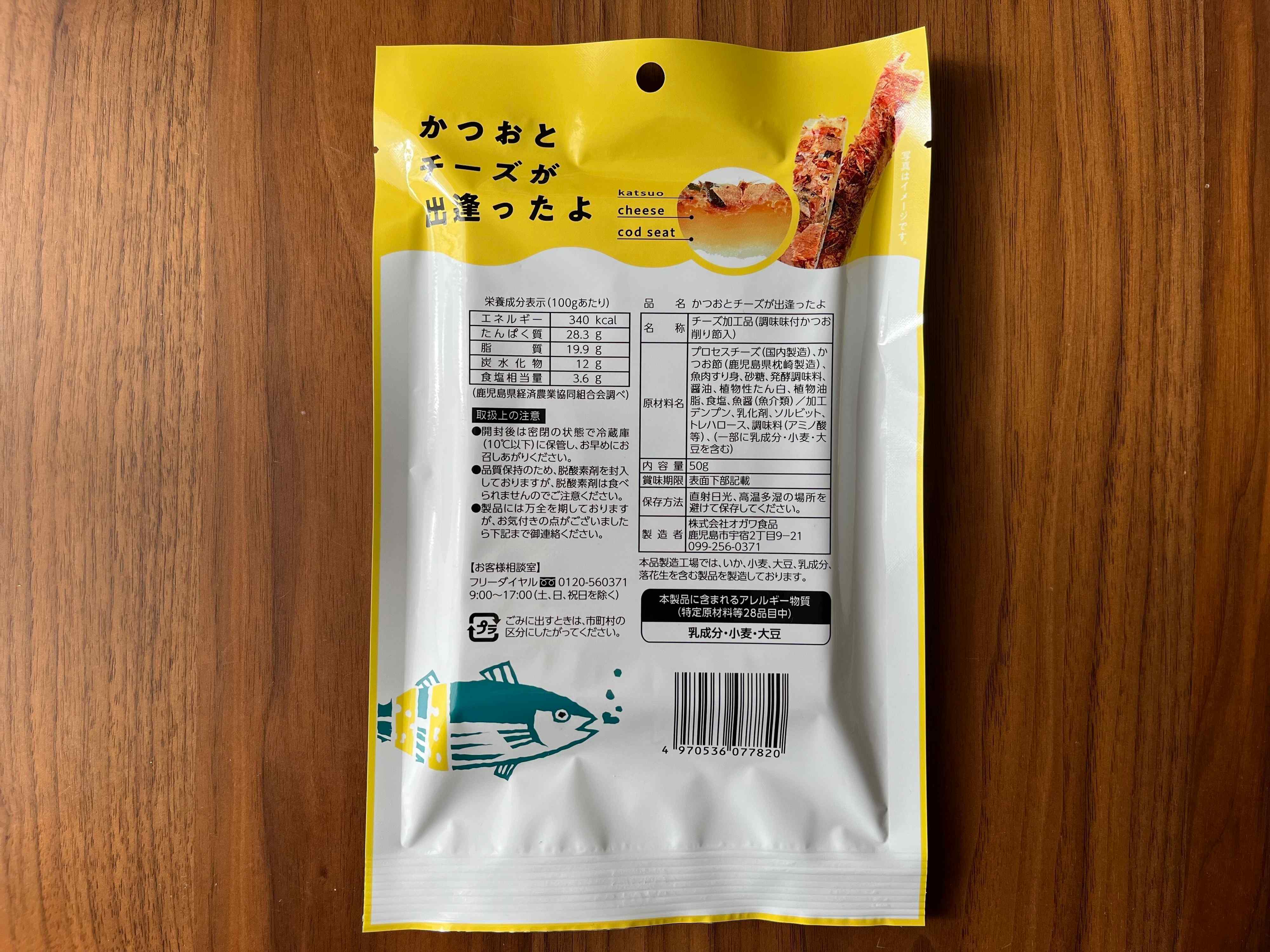 おつまみ界の王者スルメと比較してみると、その柔らかさと、濃厚で上品な香りと立体的な旨味が特徴的な「かつおとチーズが出逢ったよ」。