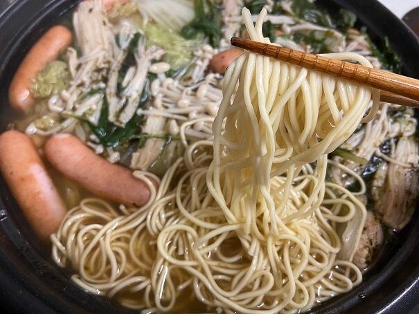北海道産小麦100%使用で鍋にそのまま入れて食べられるおいしくて便利な麺です。